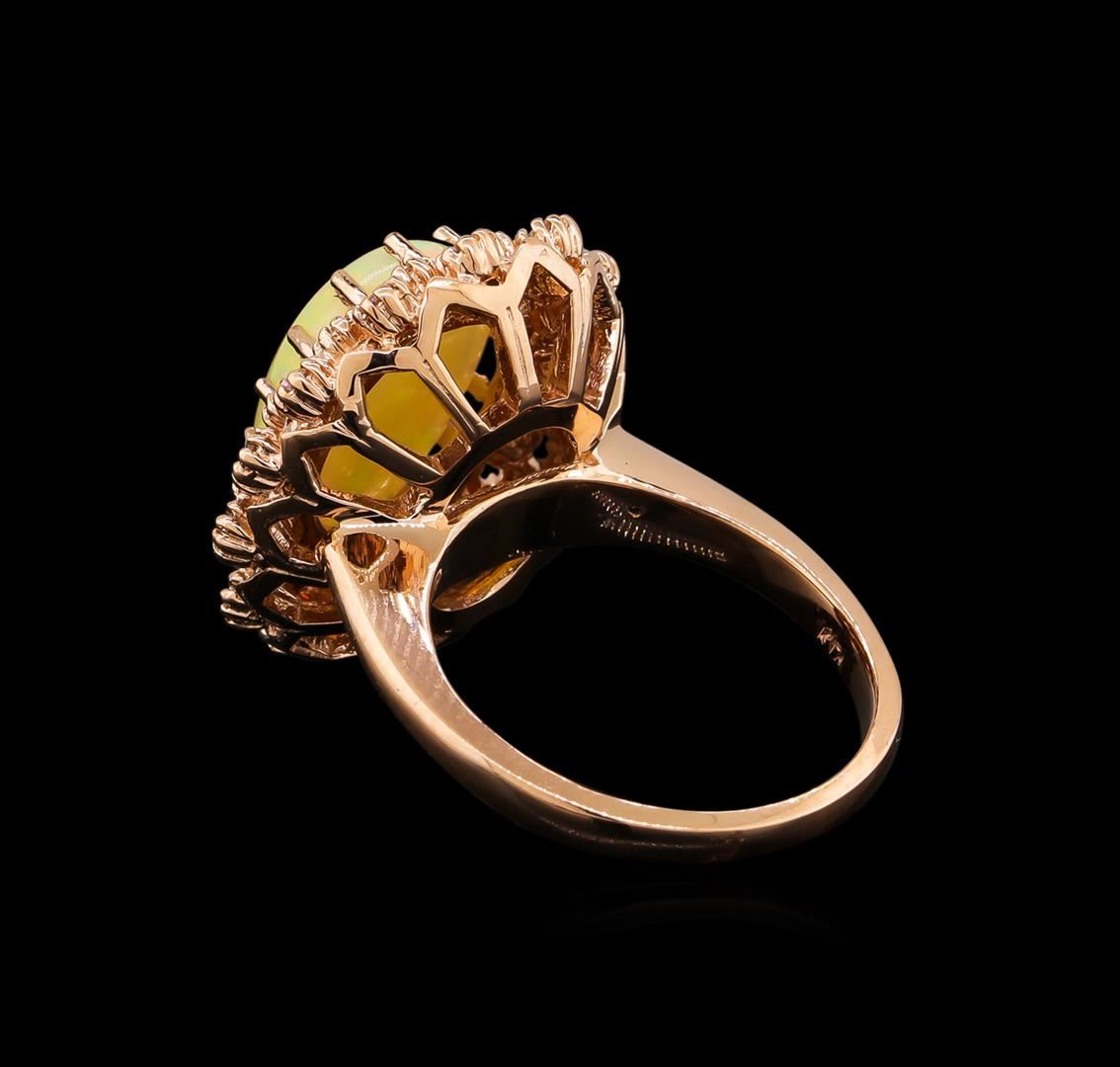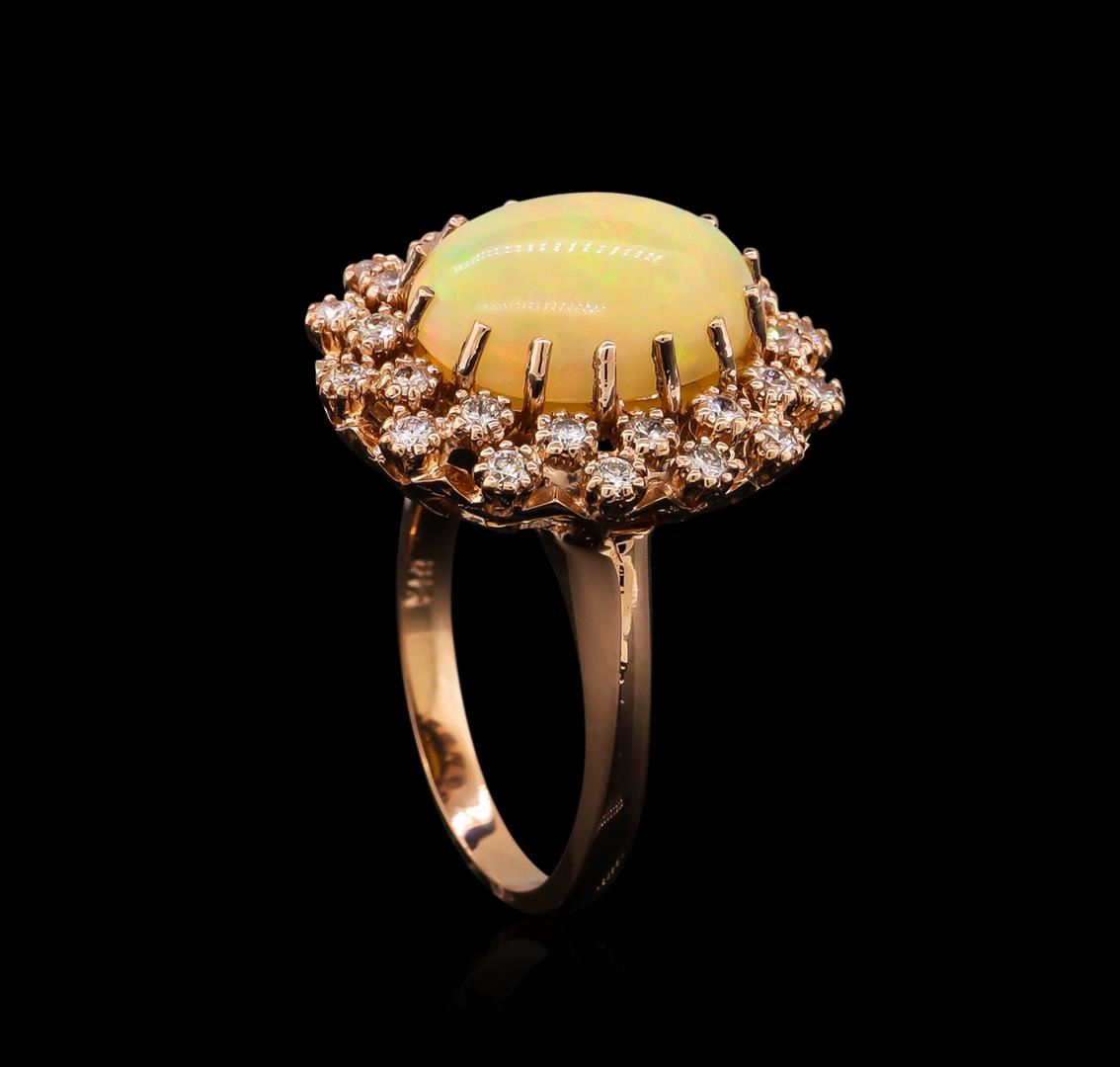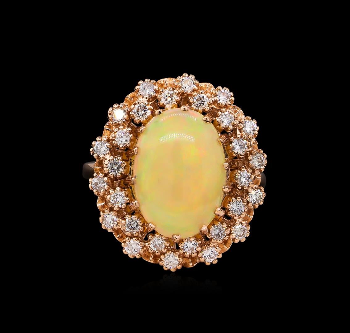 One ring featuring: 14KT rose gold weighing 8.35 grams containing one opal with a total weight of 4.22ct and side diamonds with a total weight of 0.70 ct.