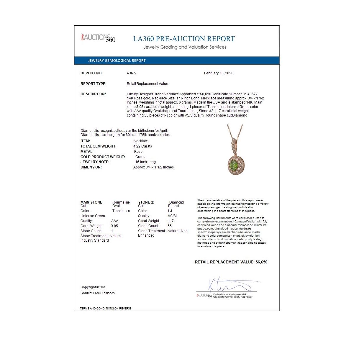 REF-134K2Y - SKU: 43677 ---- 4.22 ctw Tourmaline & Diamond Victorian Necklace 14K Rose Gold