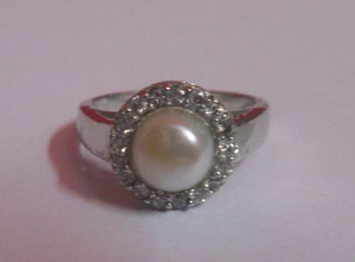 4.230g Ring of Pearl and CZ Sterling Silver