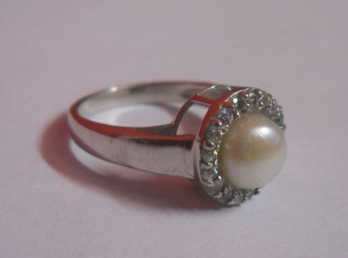 4.230g Ring of Pearl and CZ Sterling Silver