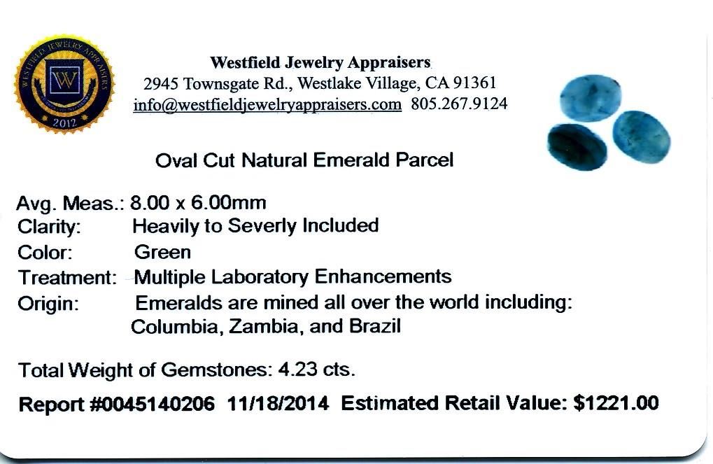 4.23cts. Oval Cut Natural Emerald Parcel Westfield Appraised at $1,221.00.