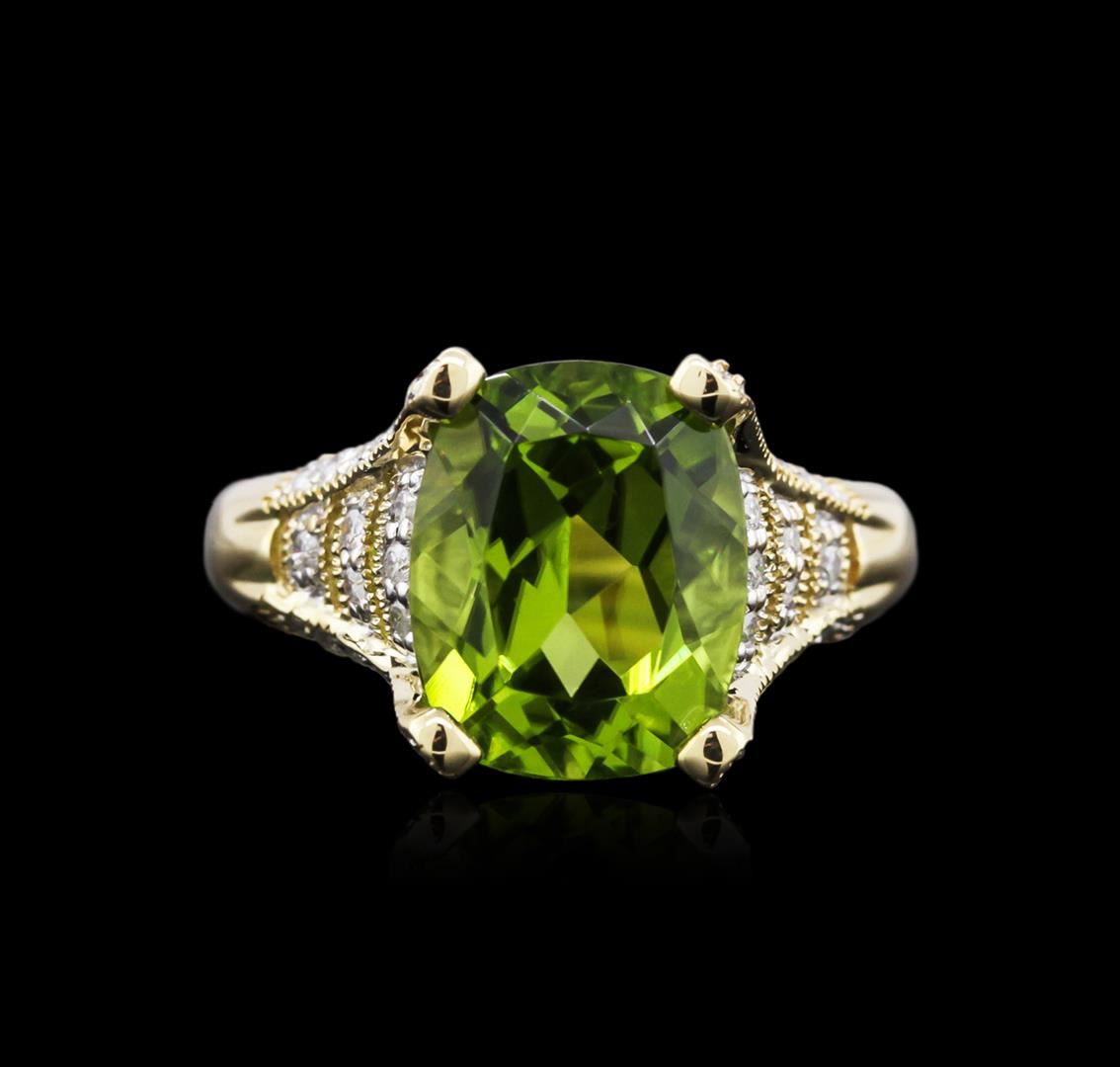 One ring featuring: 14KT yellow gold weighing 3.69 grams containing one peridot center stone with a total weight of 4.24ct and diamonds with an approximate total weight of 0.40ct.