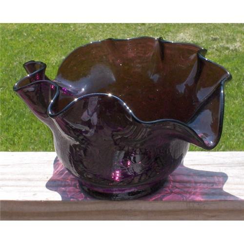WONDERFUL, VINTAGE, RARE, VERY DARK AMETHYST CRACKLE GLASS VASE or CANDY DISH, PROBABLY BISCHOFF OR BLENKO (BUT WITH NO LABEL)