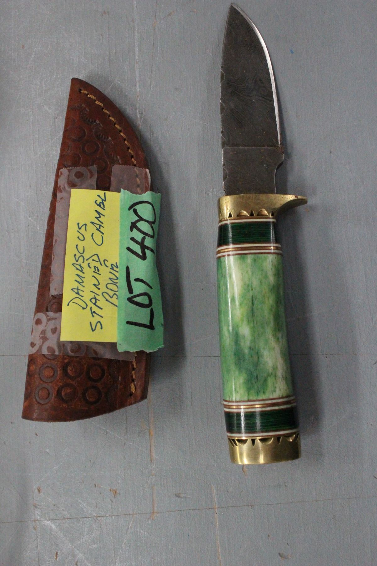 4.25" Stainless Steel Knife w/Stained Camel Bone Handle & Sheath