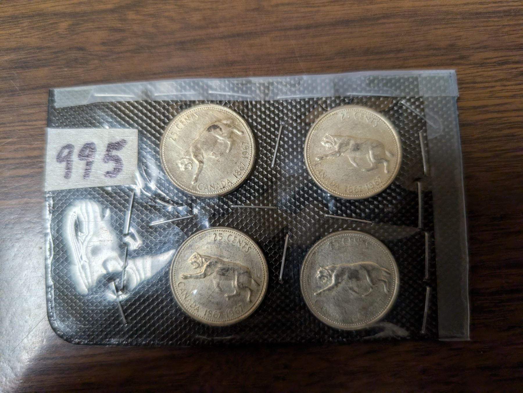 4-25 cent Silver Quarters; Cougar 1867-1967