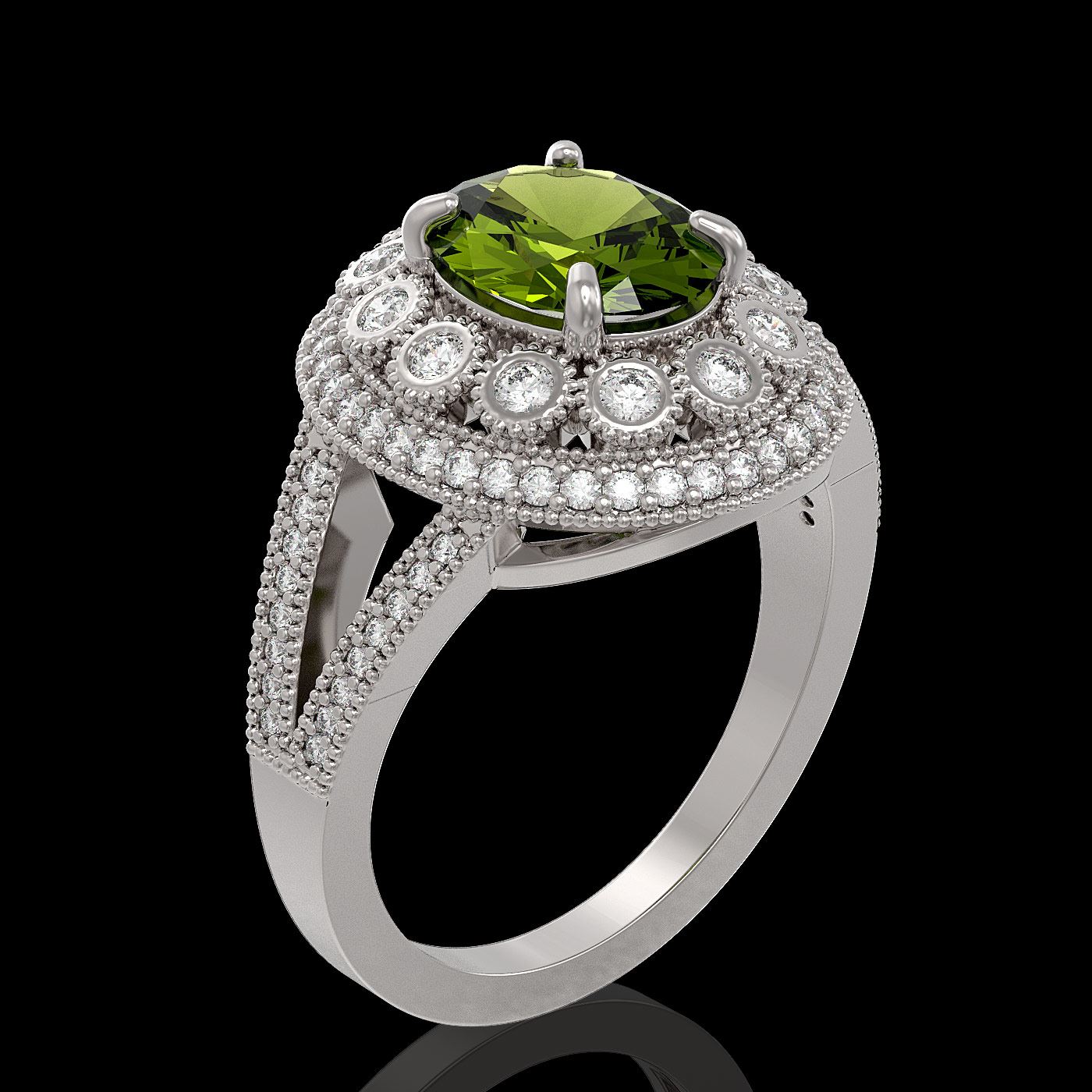 REF-132F8M - SKU: 43595 ---- 4.25 ctw Certified Tourmaline & Diamond Victorian Ring 14K White Gold