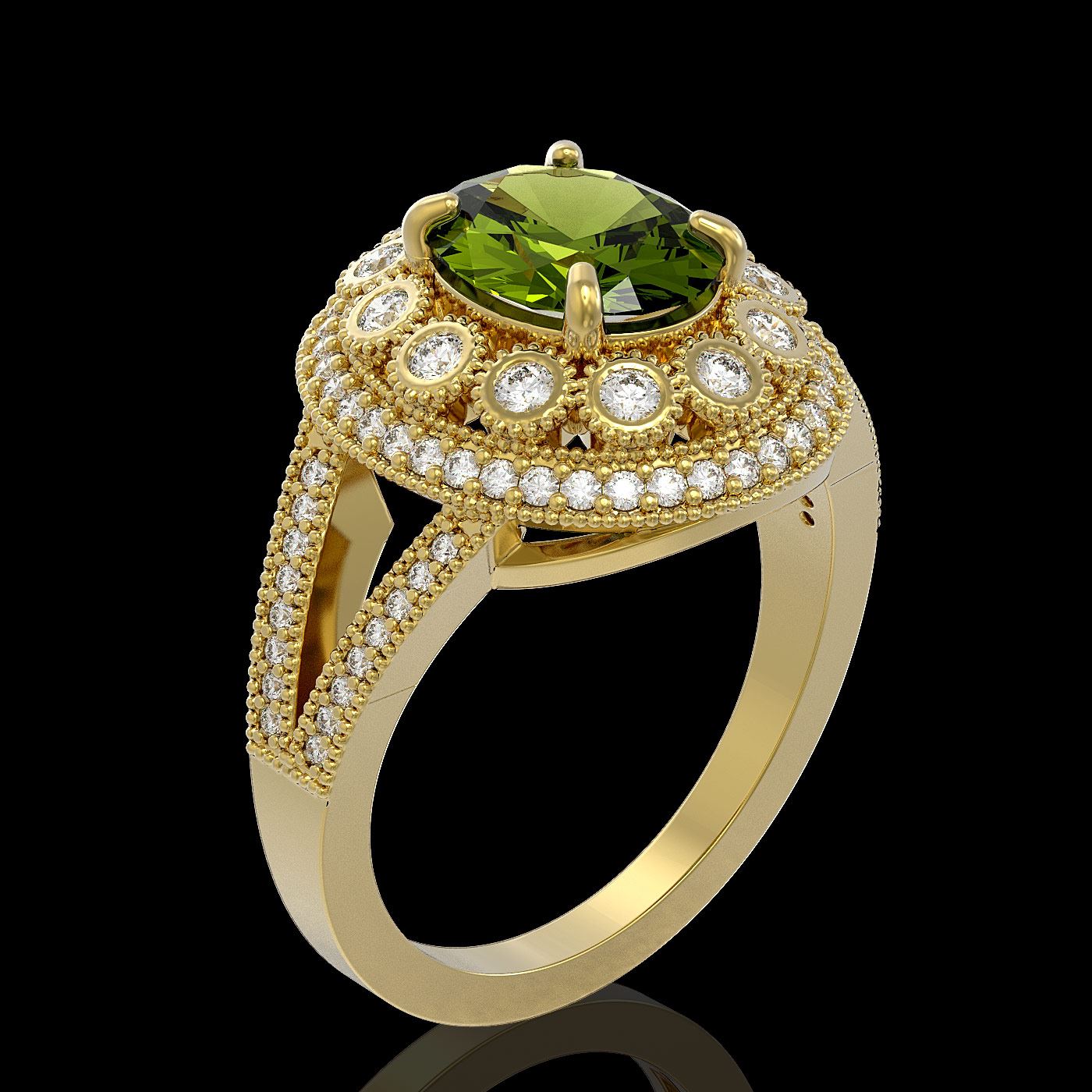 REF-132H8R - SKU: 43597 ---- 4.25 ctw Certified Tourmaline & Diamond Victorian Ring 14K Yellow Gold