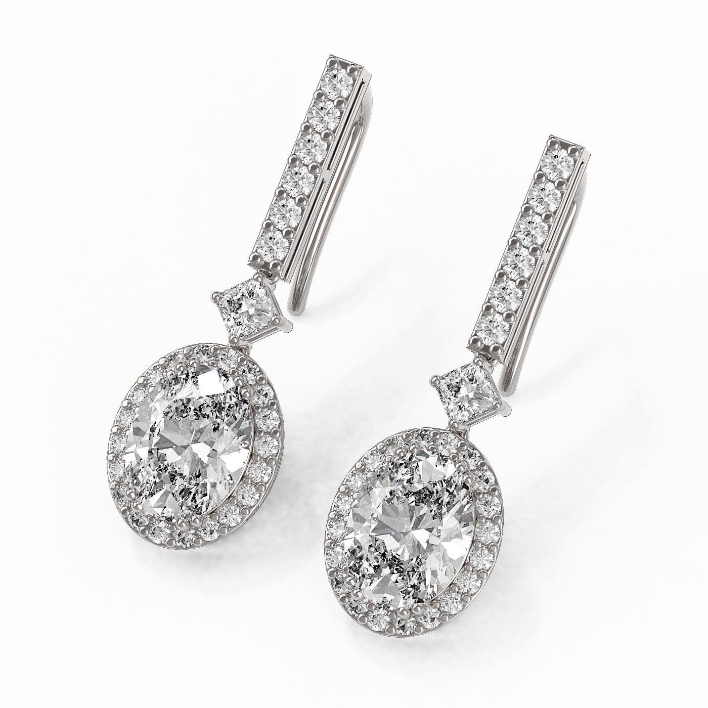 4.25 ctw Oval Cut Diamond Designer Earrings 18K White Gold
