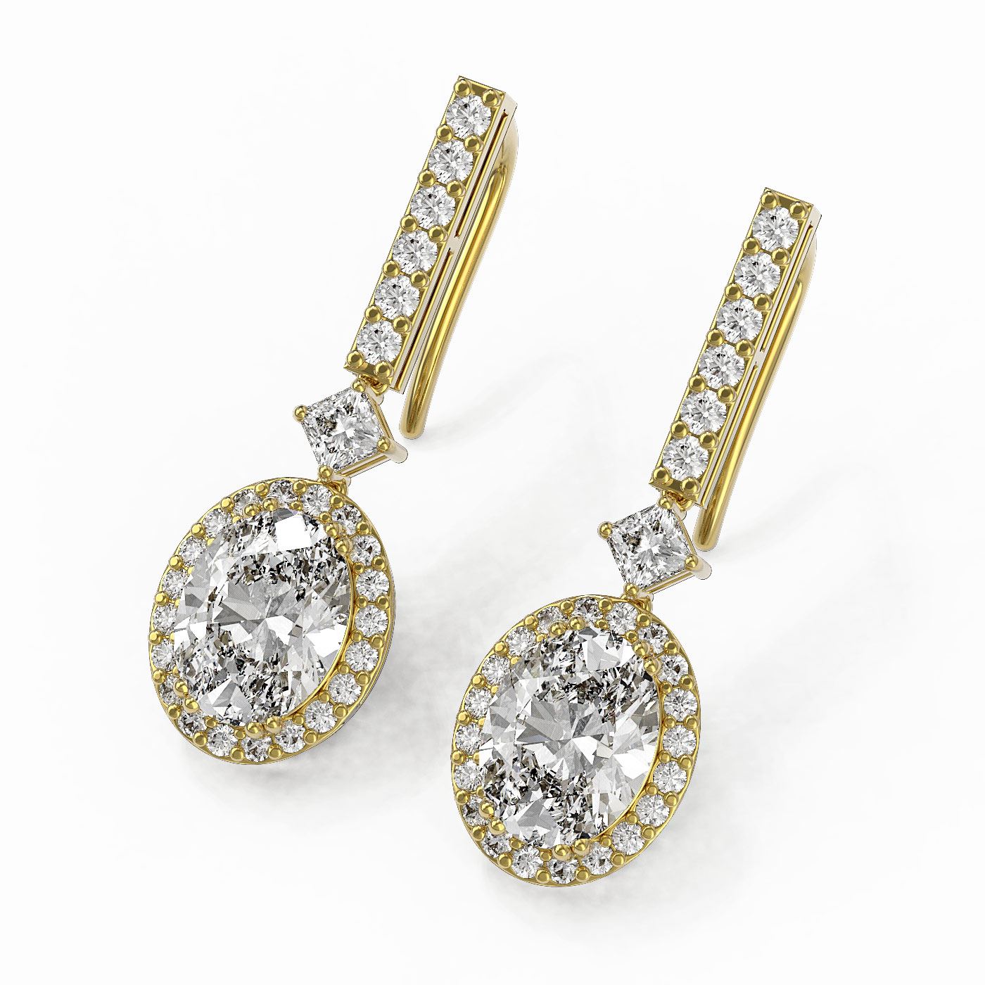 4.25 ctw Oval Cut Diamond Designer Earrings 18K Yellow Gold