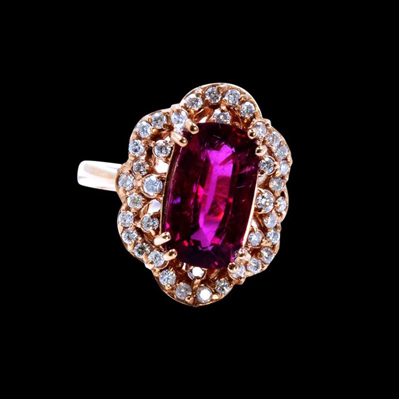 18K R/G RING :6.19GRAM /NATURAL RUBELLITE :4.25CT/DIA :0.50CT/#GVR1327
