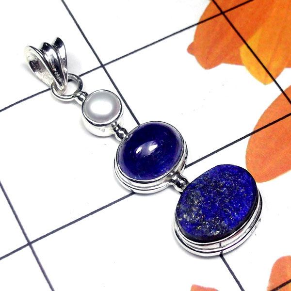 4.25g Pendant of Tanzanite, Pearl and Lapis Sterling Silver