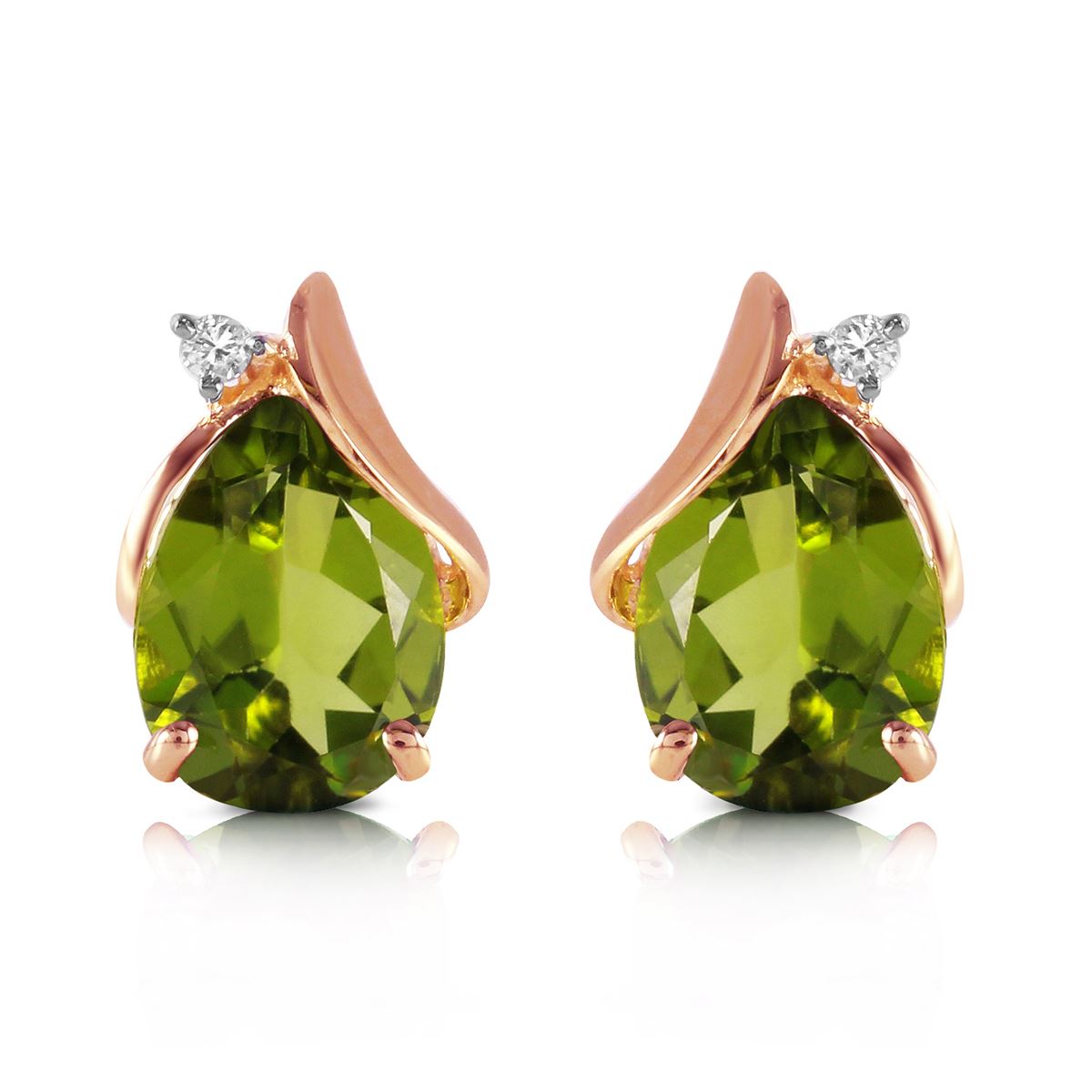 Genuine 14K Rose Gold 4.26 ctw Peridot & Diamond Earrings