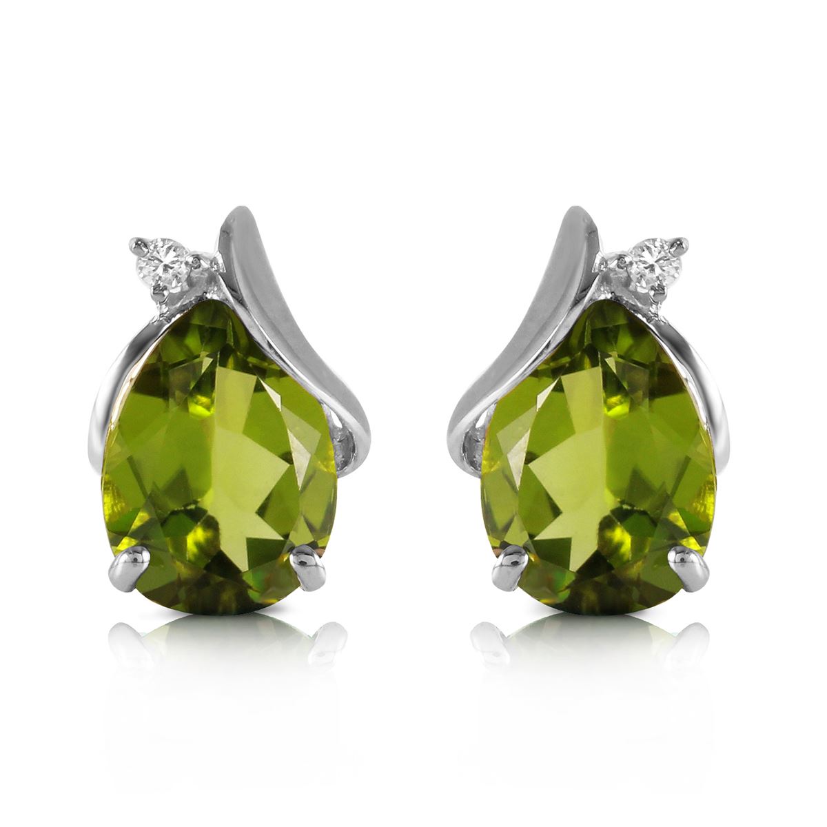 Genuine 14K White Gold 4.26 ctw Peridot & Diamond Earrings