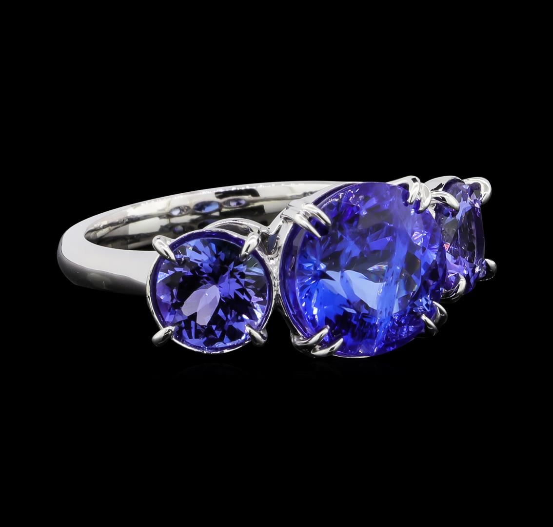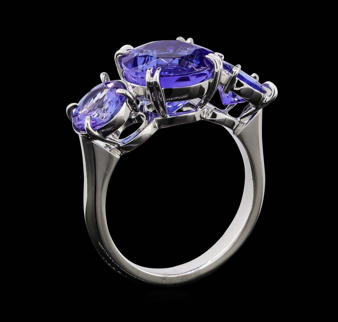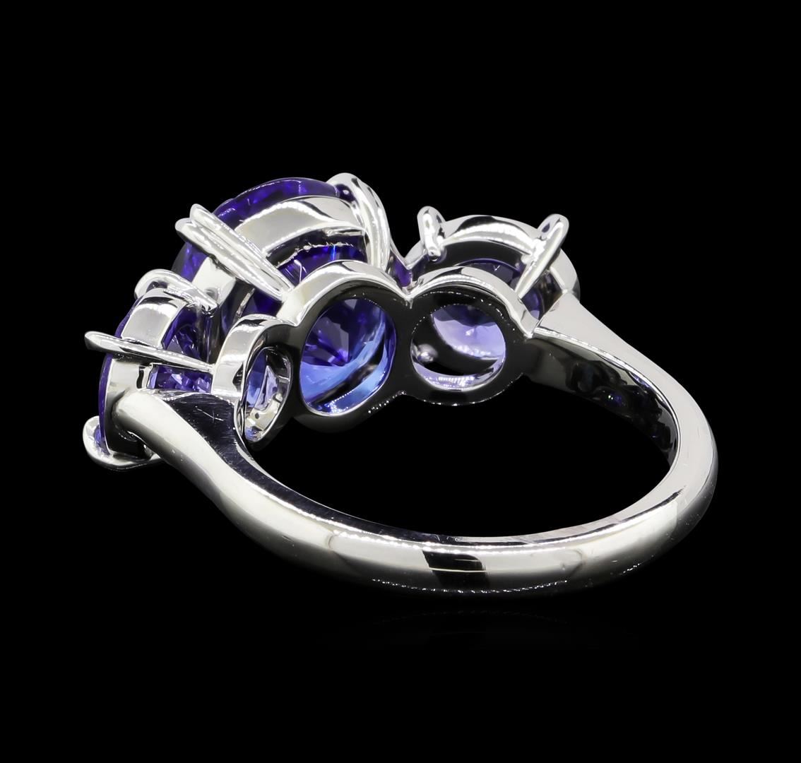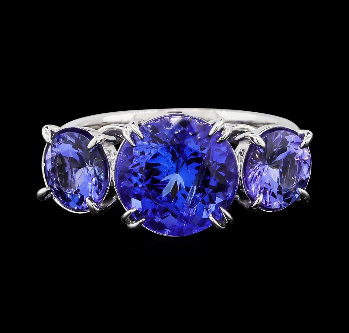 One ring featuring: platinum weighing 7.80 grams containing three tanzanites weighing 4.26ctw.