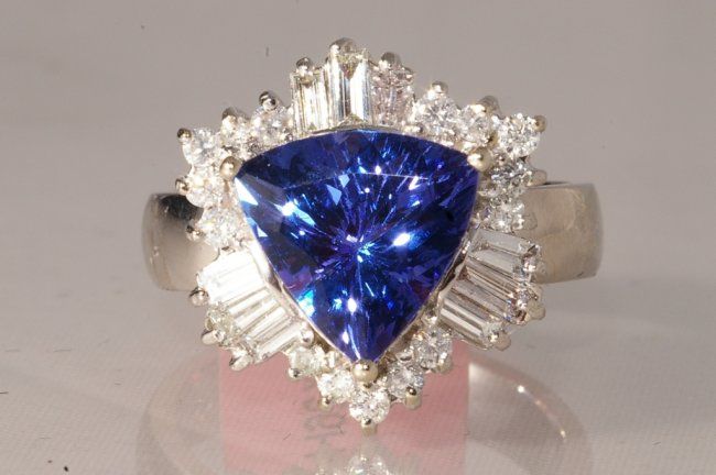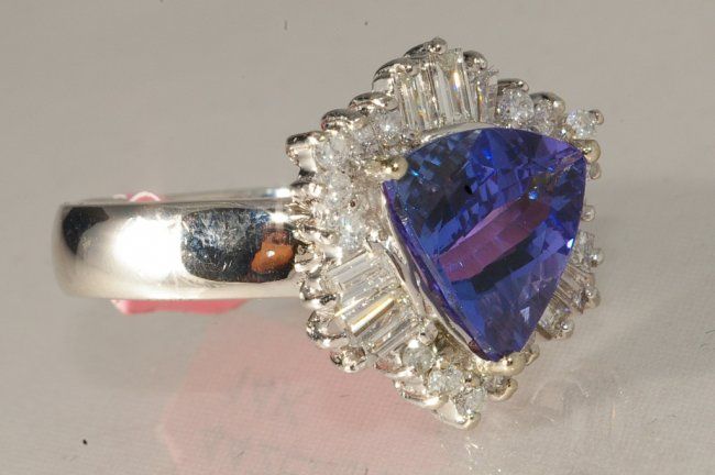 4.26ct Diamond and Tanzanite Ring set in 14K white gold, tanzanite 3.57ct, diamonds 0.69ct Condition: Excellent