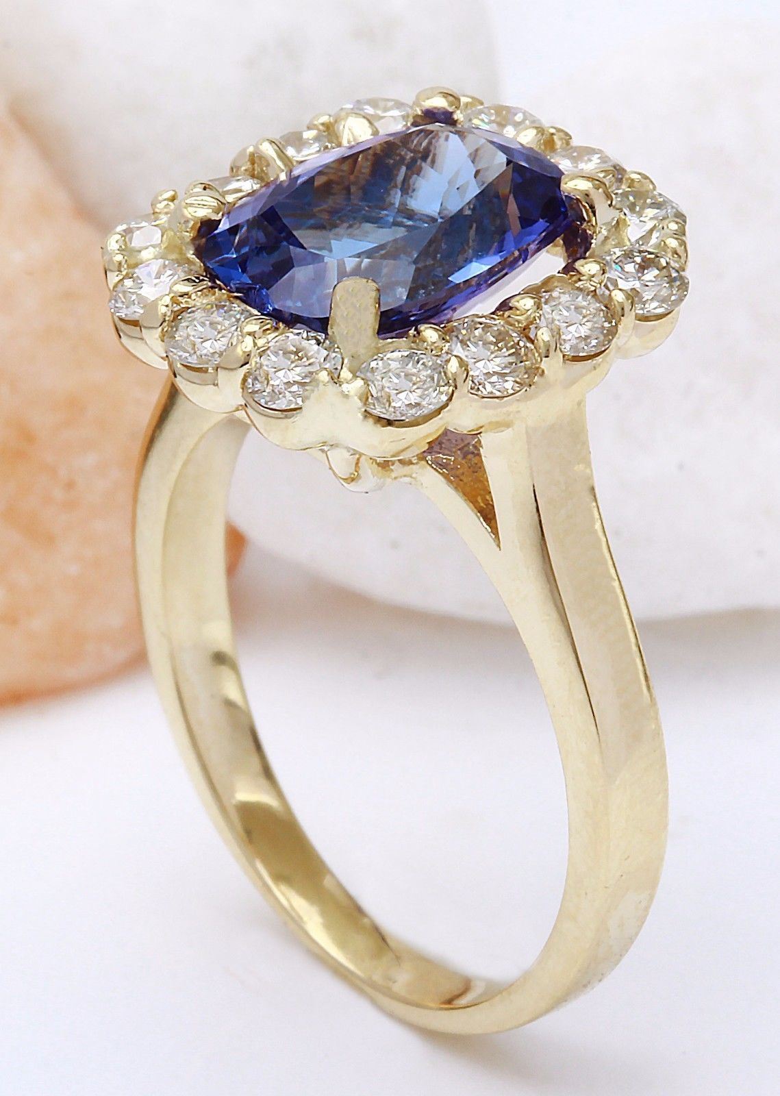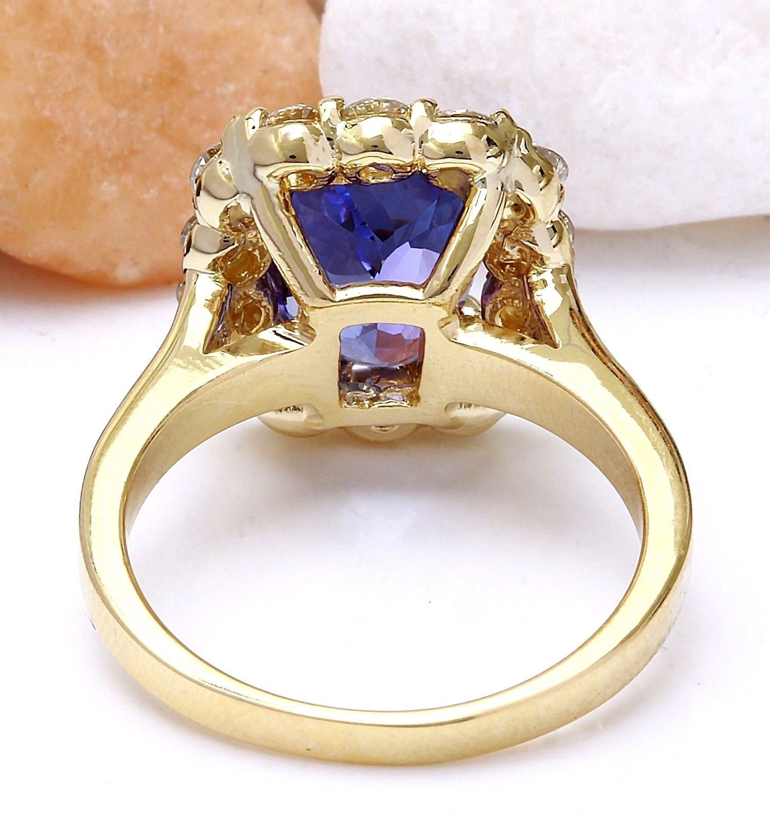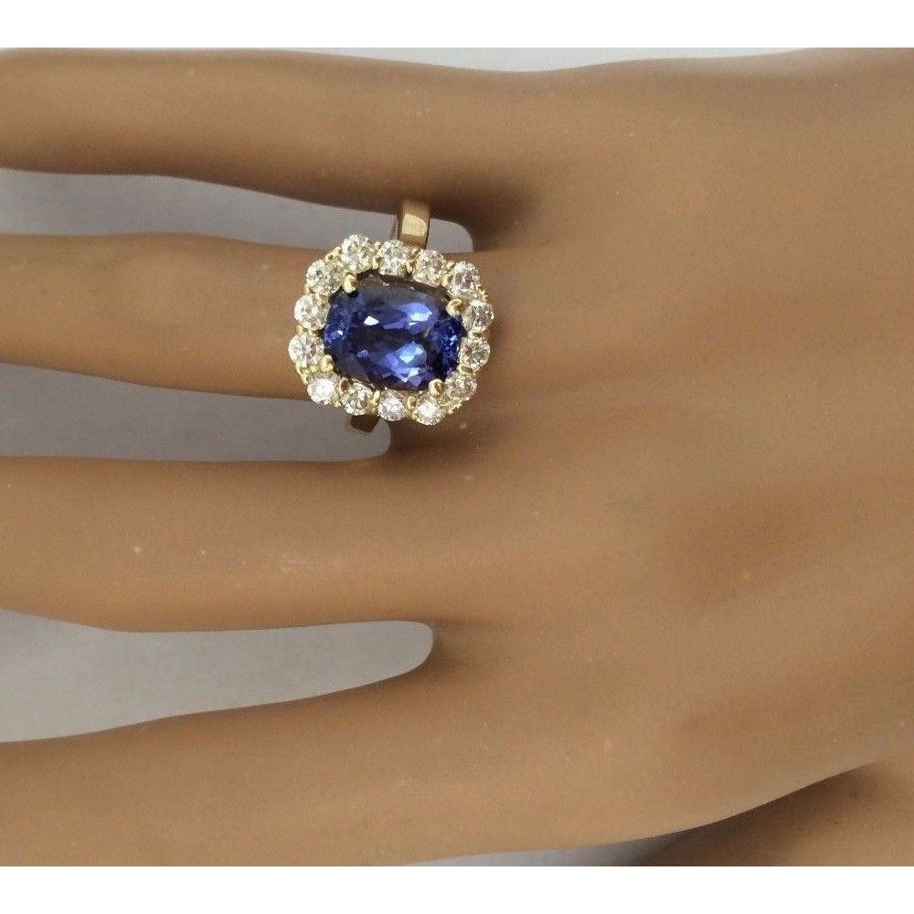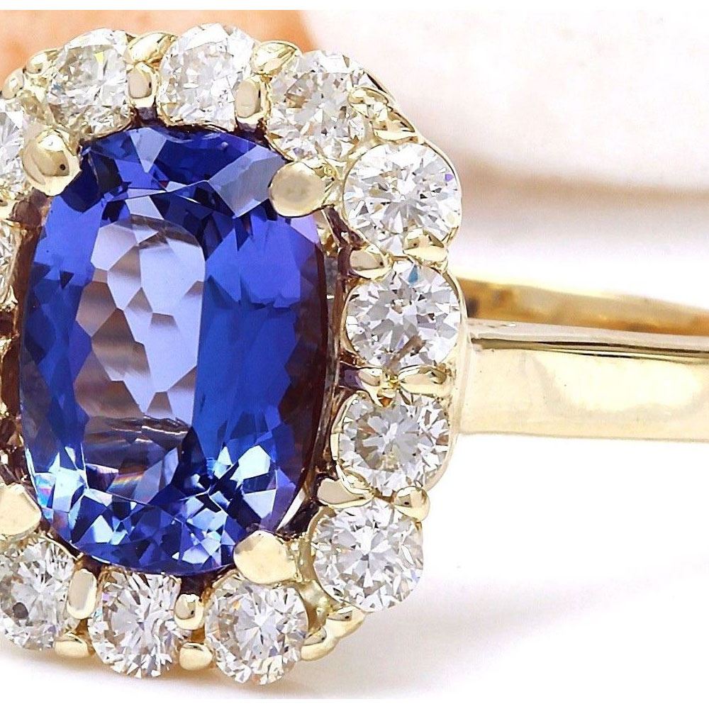 4.27 Carat Natural Tanzanite 14K Solid Yellow Gold Diamond Ring