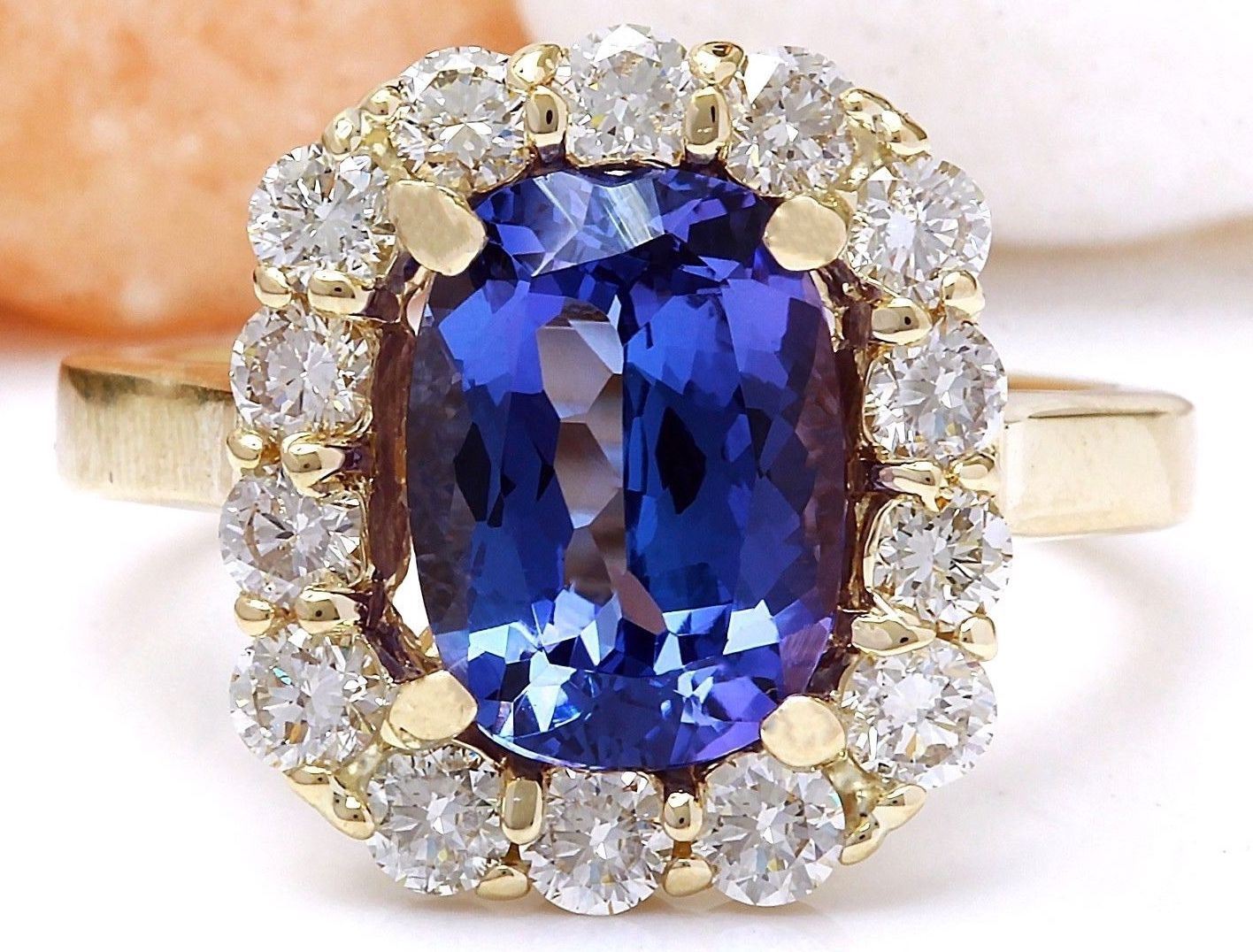 4.27 Carat Natural Tanzanite 14K Solid Yellow Gold Diamond Ring