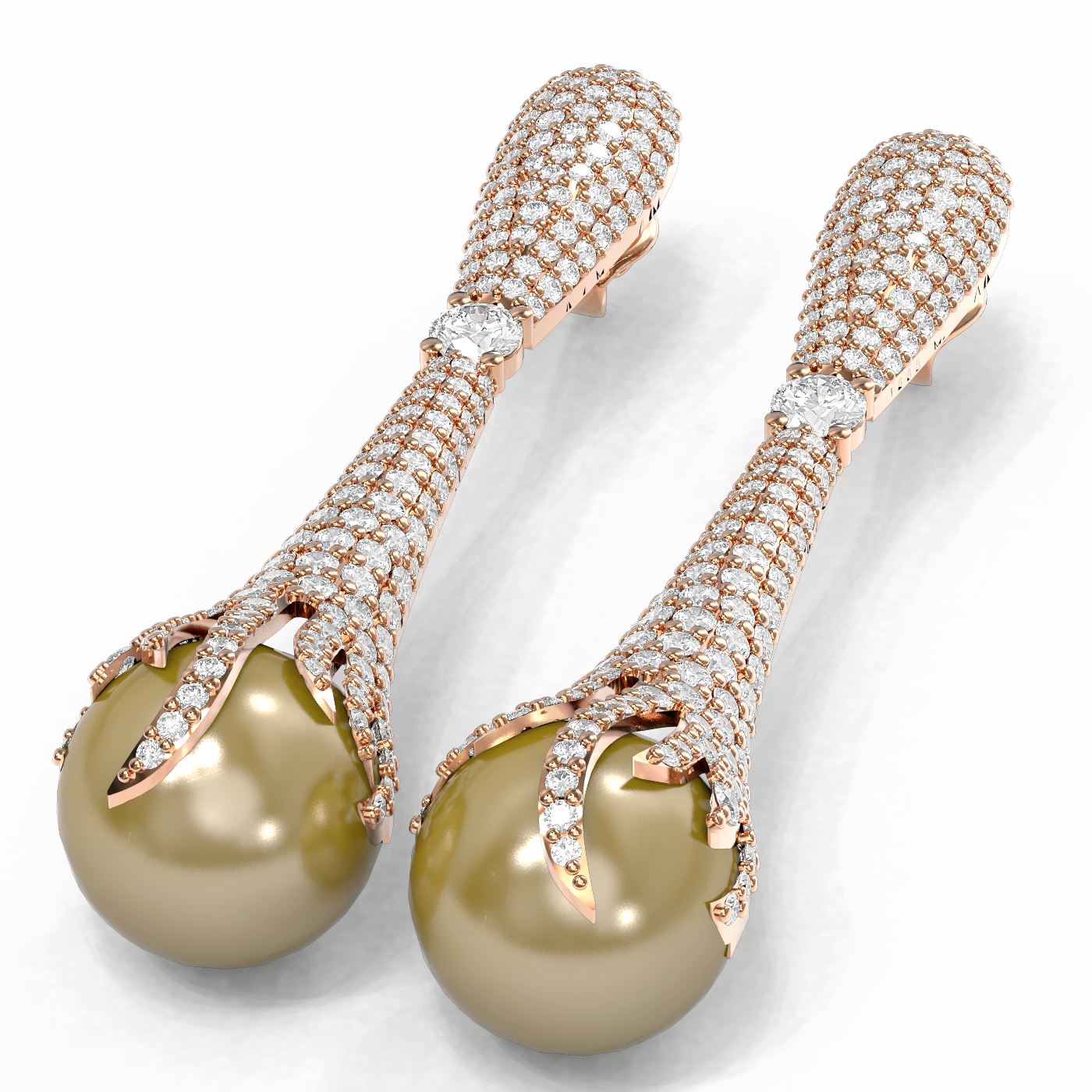 SKU: 60630 ---- 4.28 ctw Diamond & Pearl Earrings 18K Rose Gold