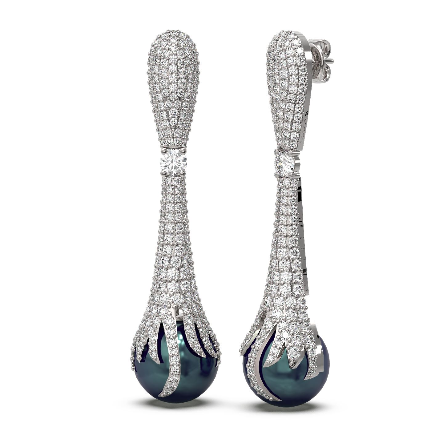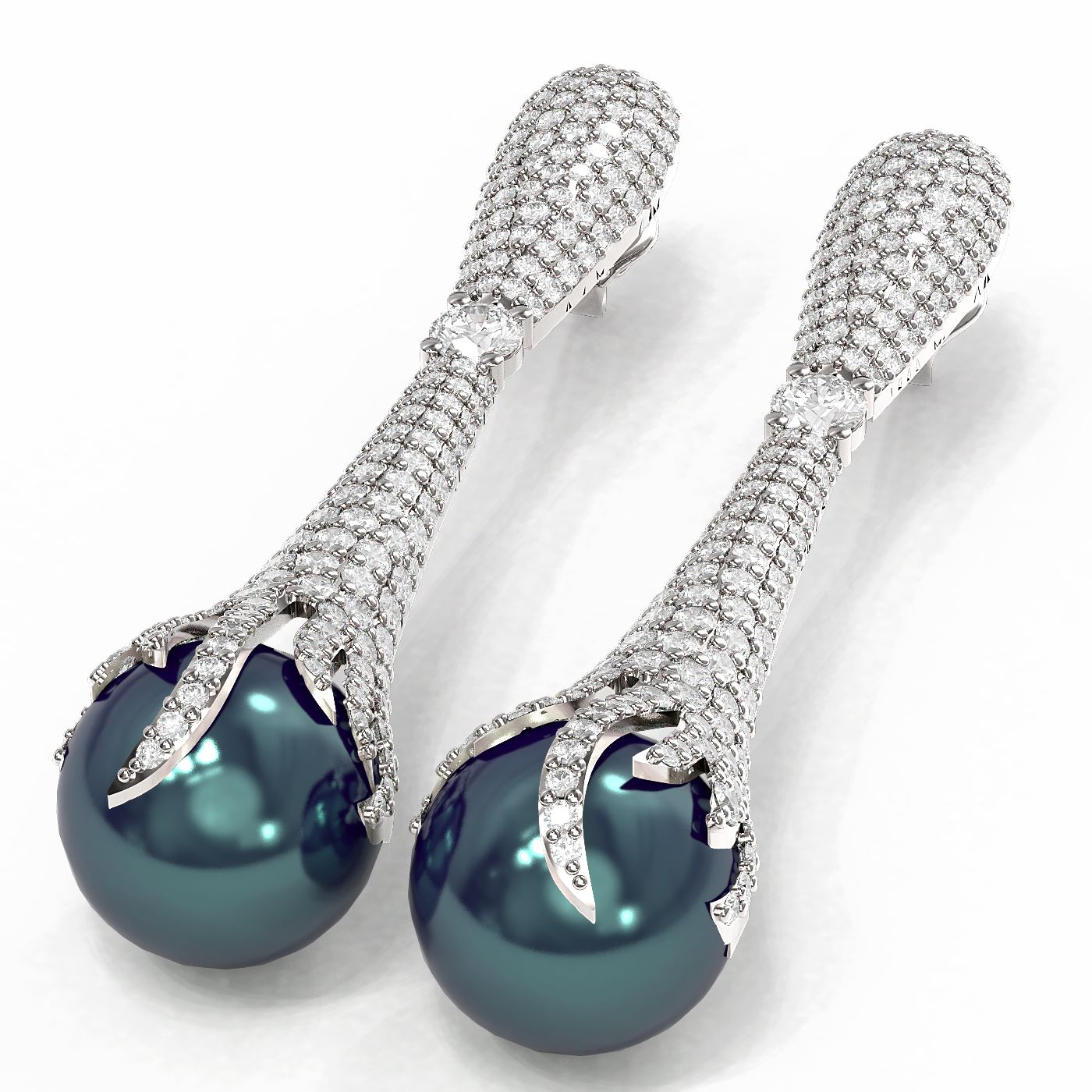 REF-353H5R - SKU: 60632 ---- 4.28 ctw Diamond & Pearl Earrings 18K White Gold