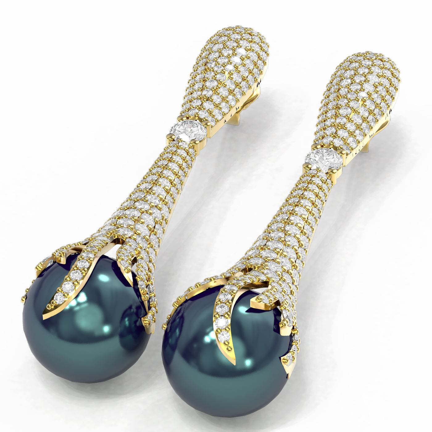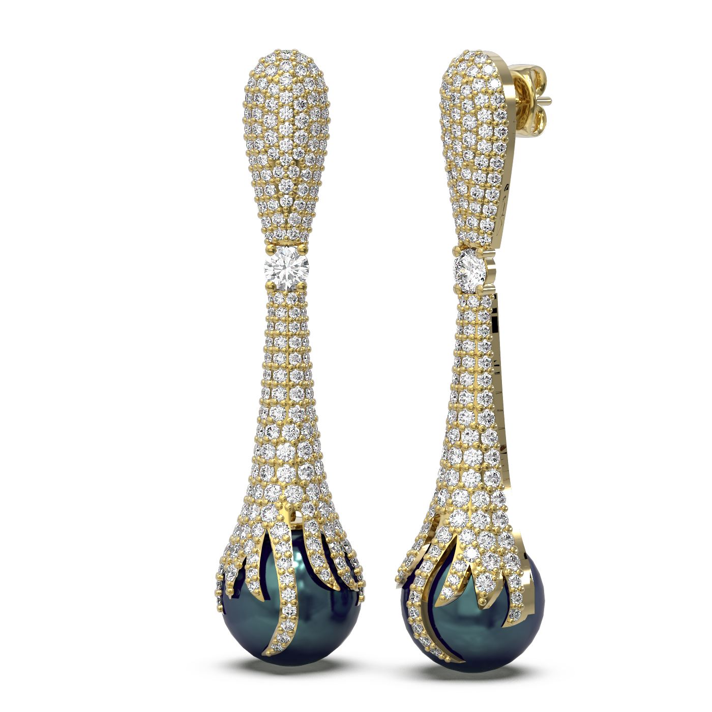 4.28 ctw Diamond and Pearl Earrings 18K Yellow Gold