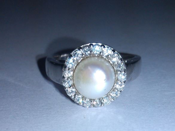 4.280g Ring of Pearl and CZ Sterling 925 Silver