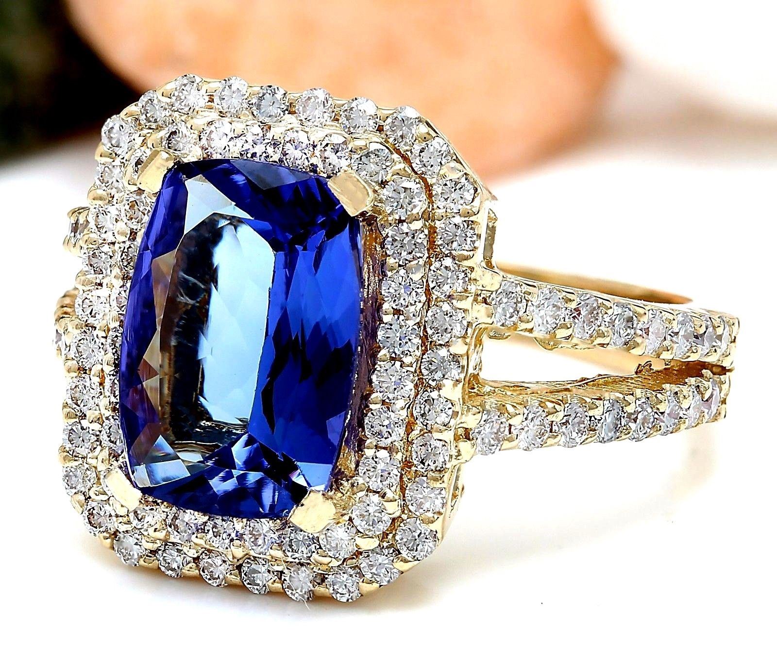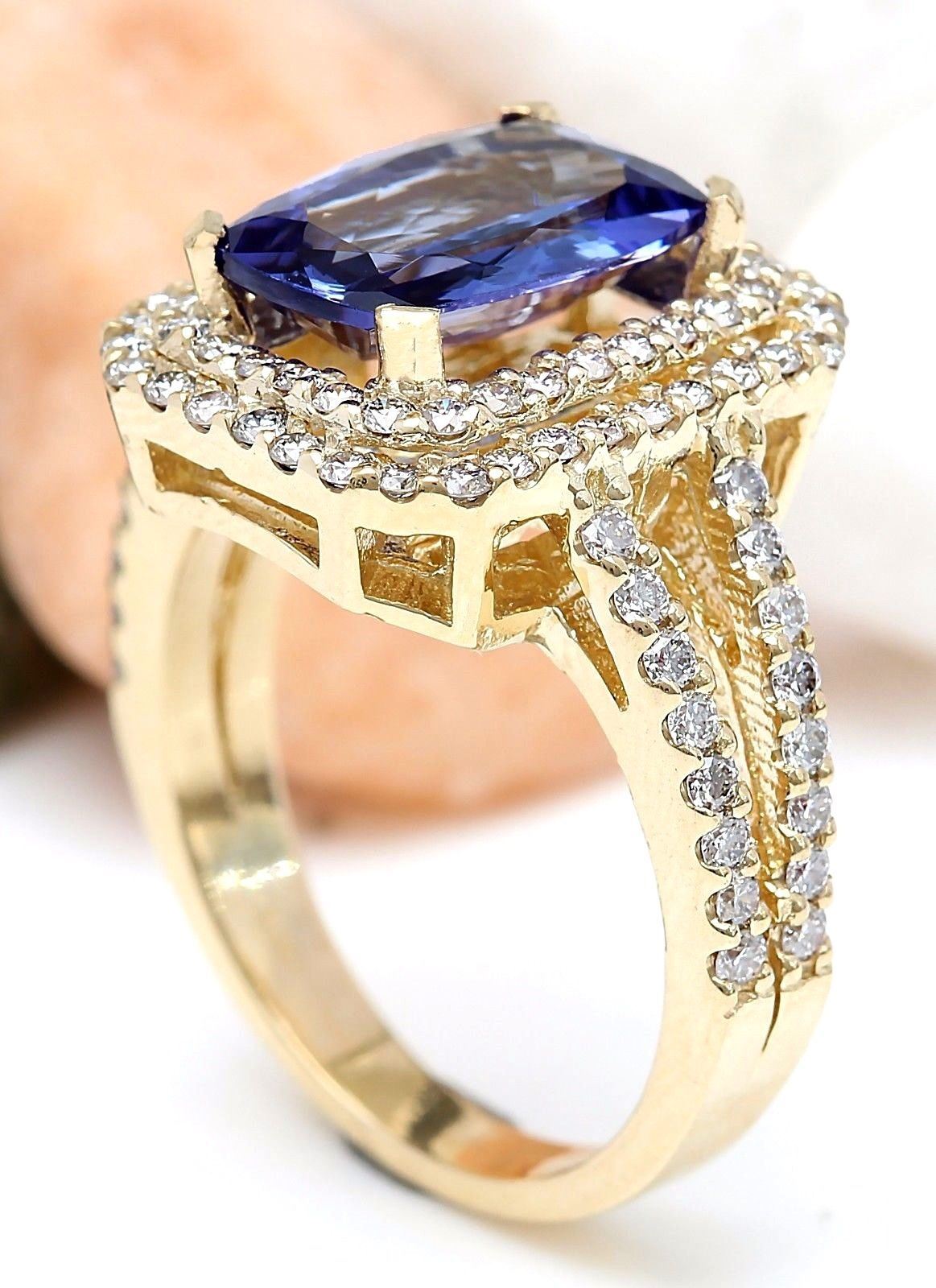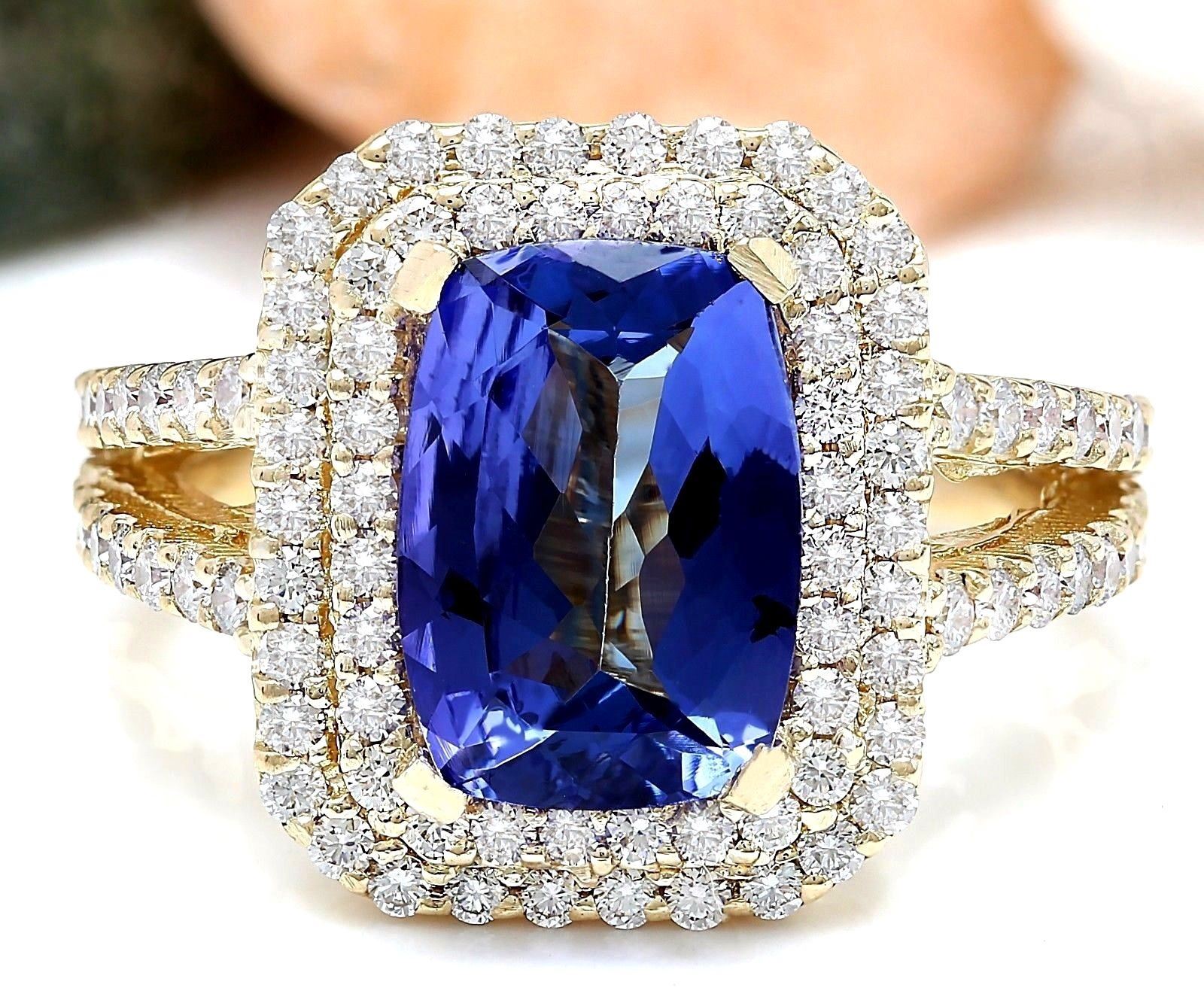 4.29 Carat Natural Tanzanite 14K Solid Yellow Gold Diamond Ring