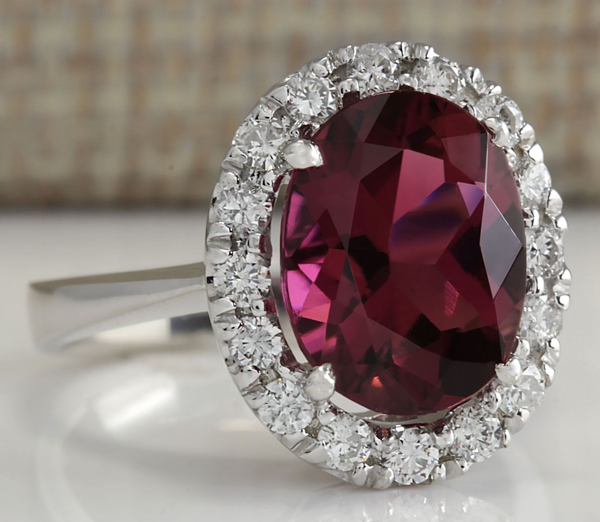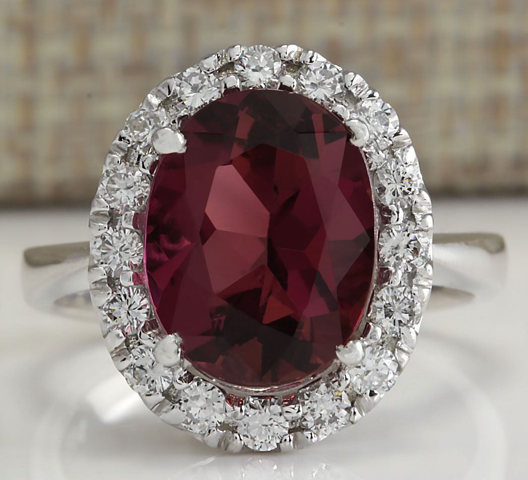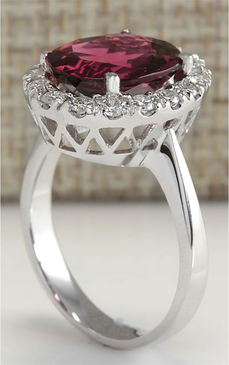 Stamped: 14K Ring Size: 6.75 Total Ring Weight: 5 Grams Diamond Weight: Total natural diamond weight is .60carat. SI1-SI2 clarity / G-H color Gemstone Weight: Total Natural Tourmaline Weight is 3.69ctw (Measures: 11.81x9.18mm) VVS Face Measures: 16.42x13.70mm Main stone color: Pink [SKU:702754]