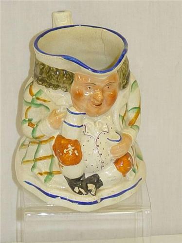 4 3/4" 19TH CENT. ENGLISH STAFFORDSHIRE TOBY MUG - INTERIOR CRAZING and WEAR TO PAINT;