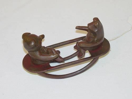 4 3/4" CAST IRON ROCKING TOY W/ FROG & PIG;