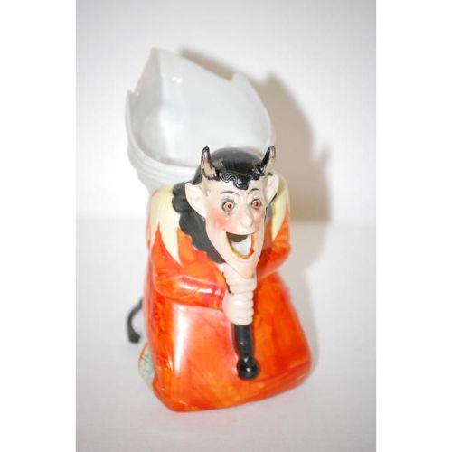 4 3/4" SHAFER VATER DEVIL CREAMER - KNEELING DEVIL CREAMER W/ IMPRESSED MARK ON BOTTOM - MINOR WEAR TO PAINT, 1 HORN W/ CHIP ON BACK, IMPERFECTIONS