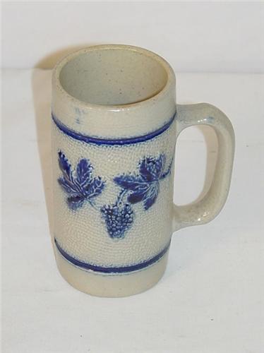 4 3/4" STONEWARE MUG W/ BLUE BAND & BLUE EMBOSSED GRAPES