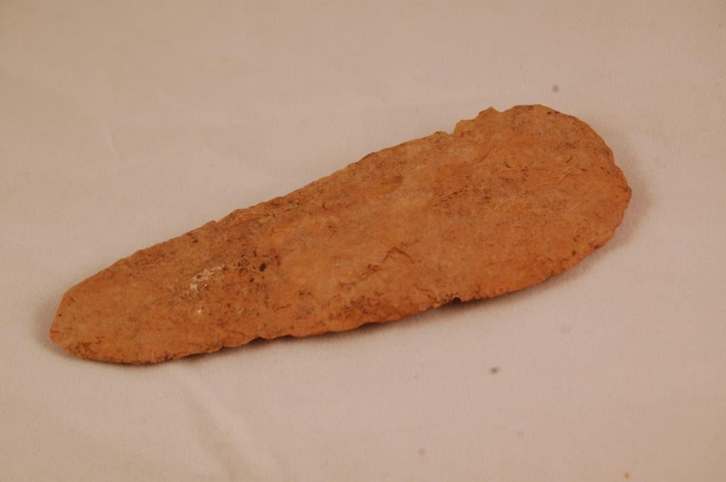 4 3/8" flint blade, beveled on on e side, flat on the reverse. No chips or cracks.