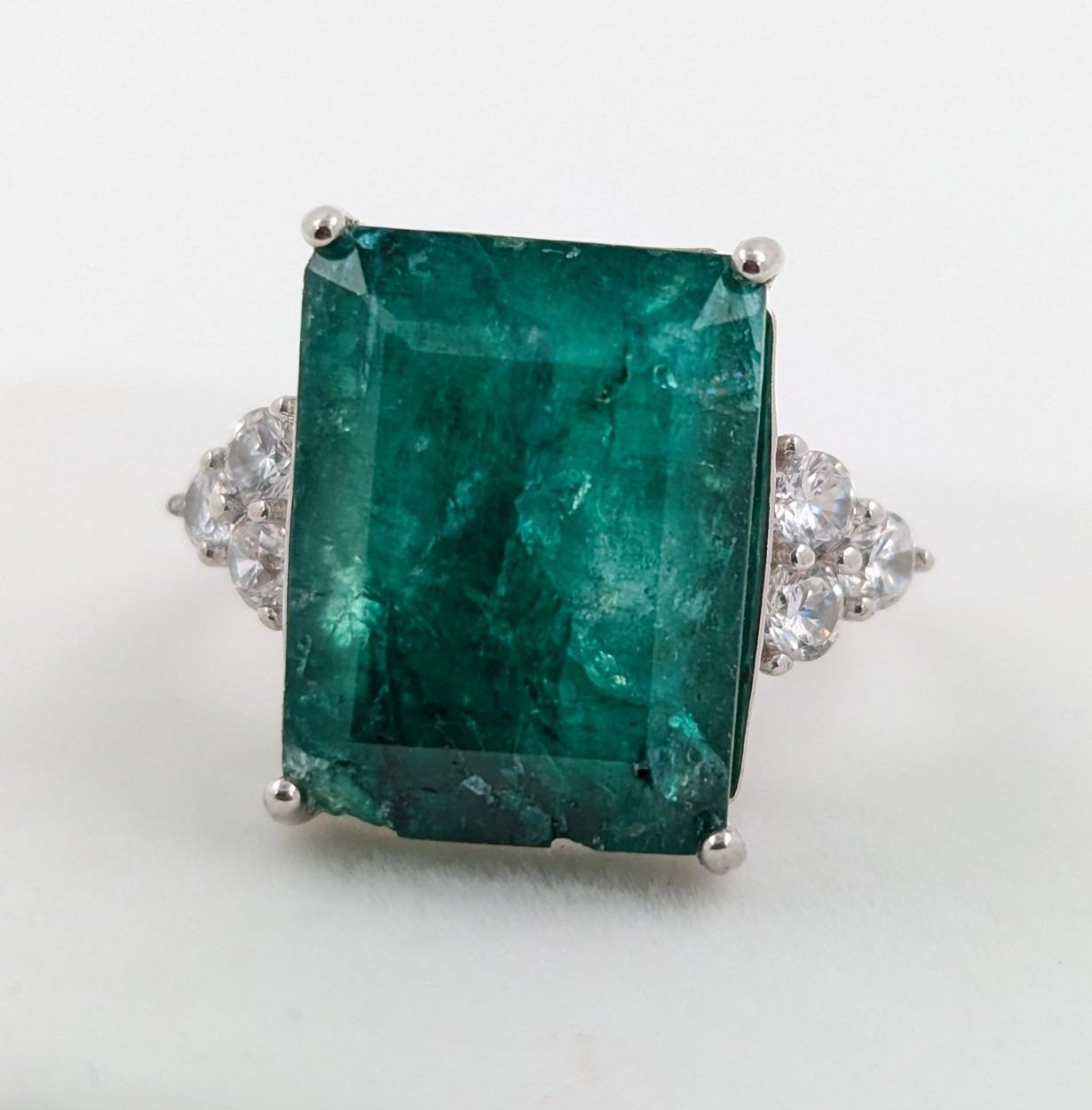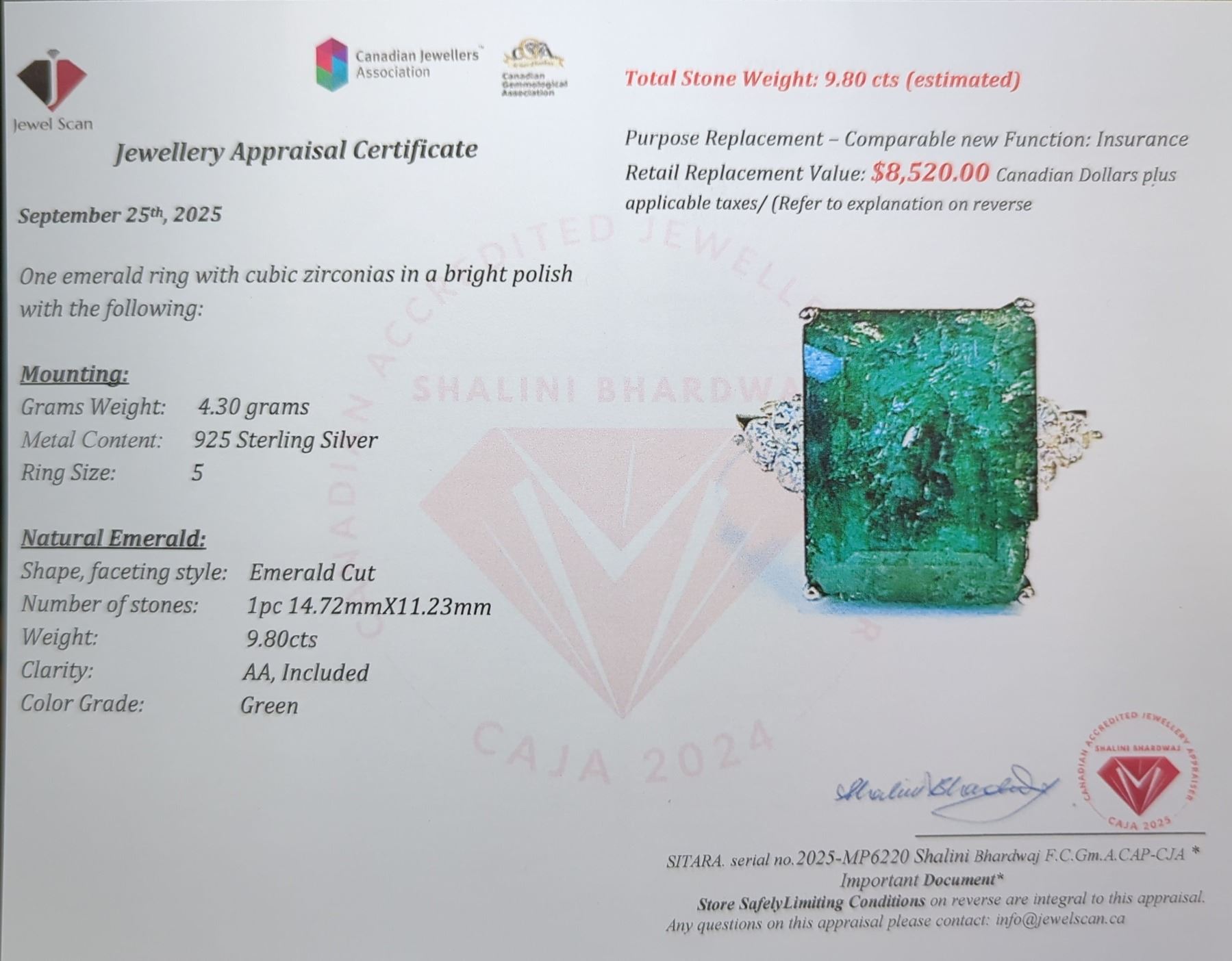 4.3 ct Certified Silver Emerald gemstone RIng ($8,520 Appraisal)