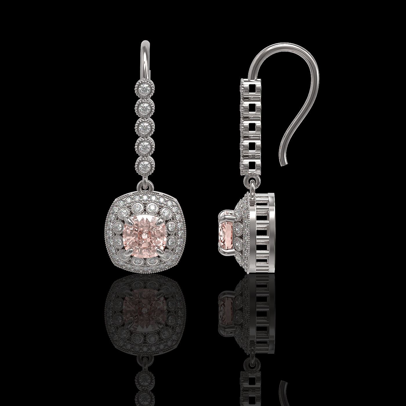 REF-172N8F - SKU: 44069 ---- 4.3 ctw Certified Morganite & Diamond Victorian Earrings 14K White Gold