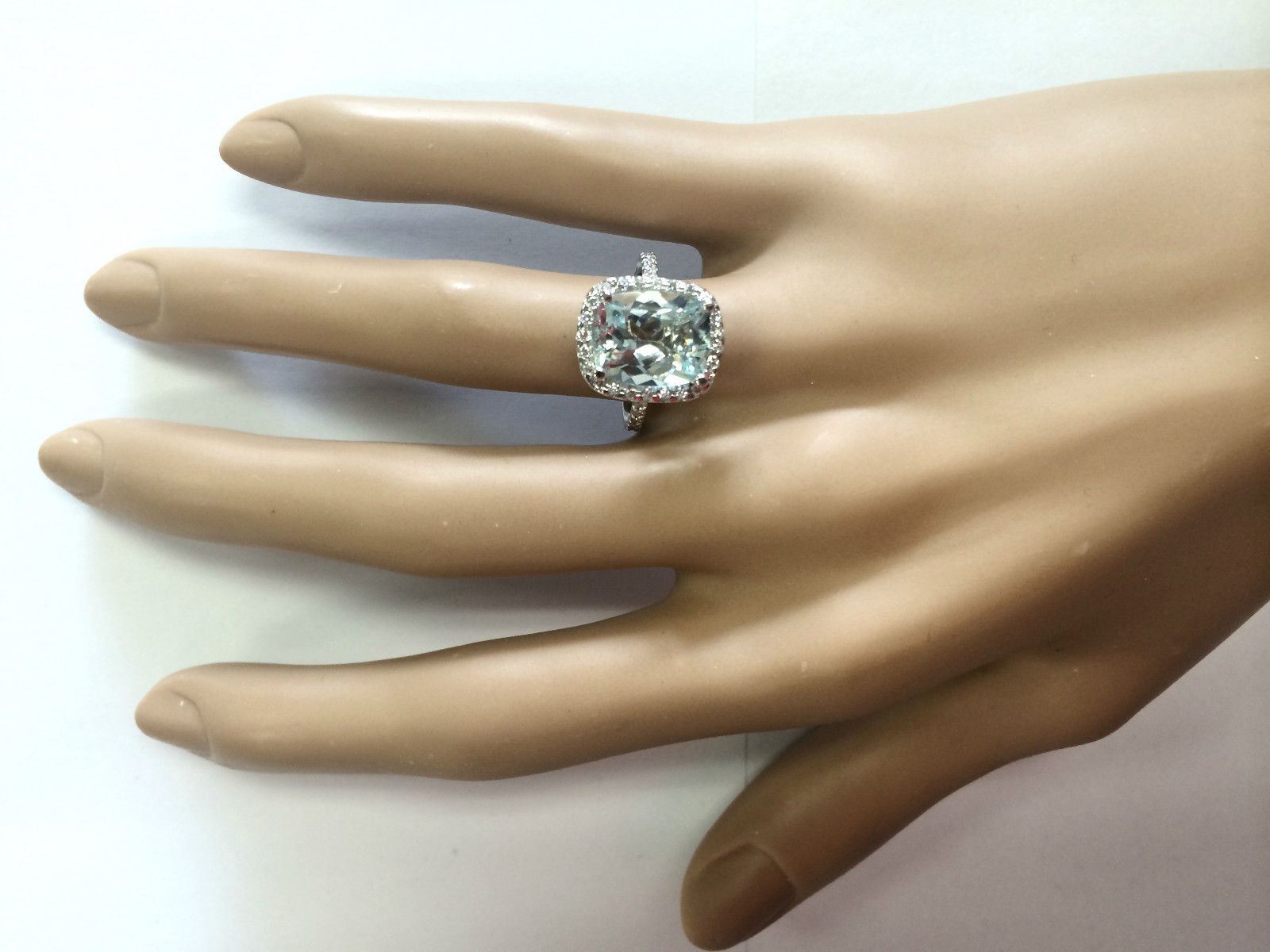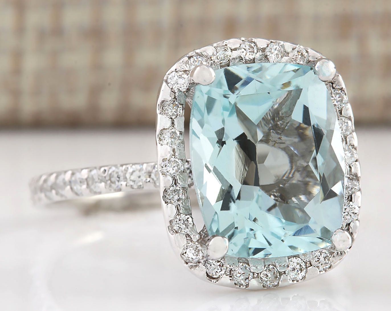 4.30 CTW Natural Aquamarine And Diamond Ring In 14k Solid White Gold