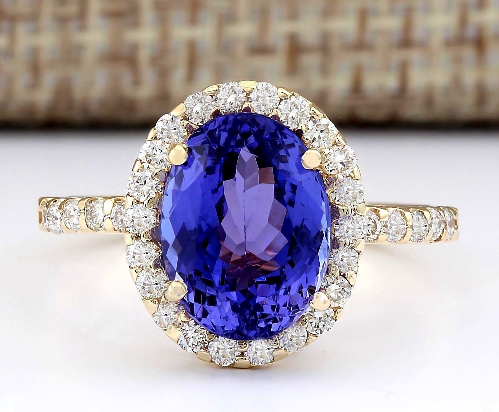 4.30 CTW Natural Tanzanite And Diamond Ring In 18K Yellow Gold