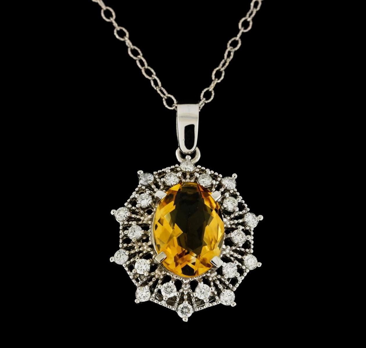One pendant with chain : 14KT white gold weighing 4.66gm containing citrine quartz with a total weight of 4.30 ct and diamonds weighing 0.74ctw.