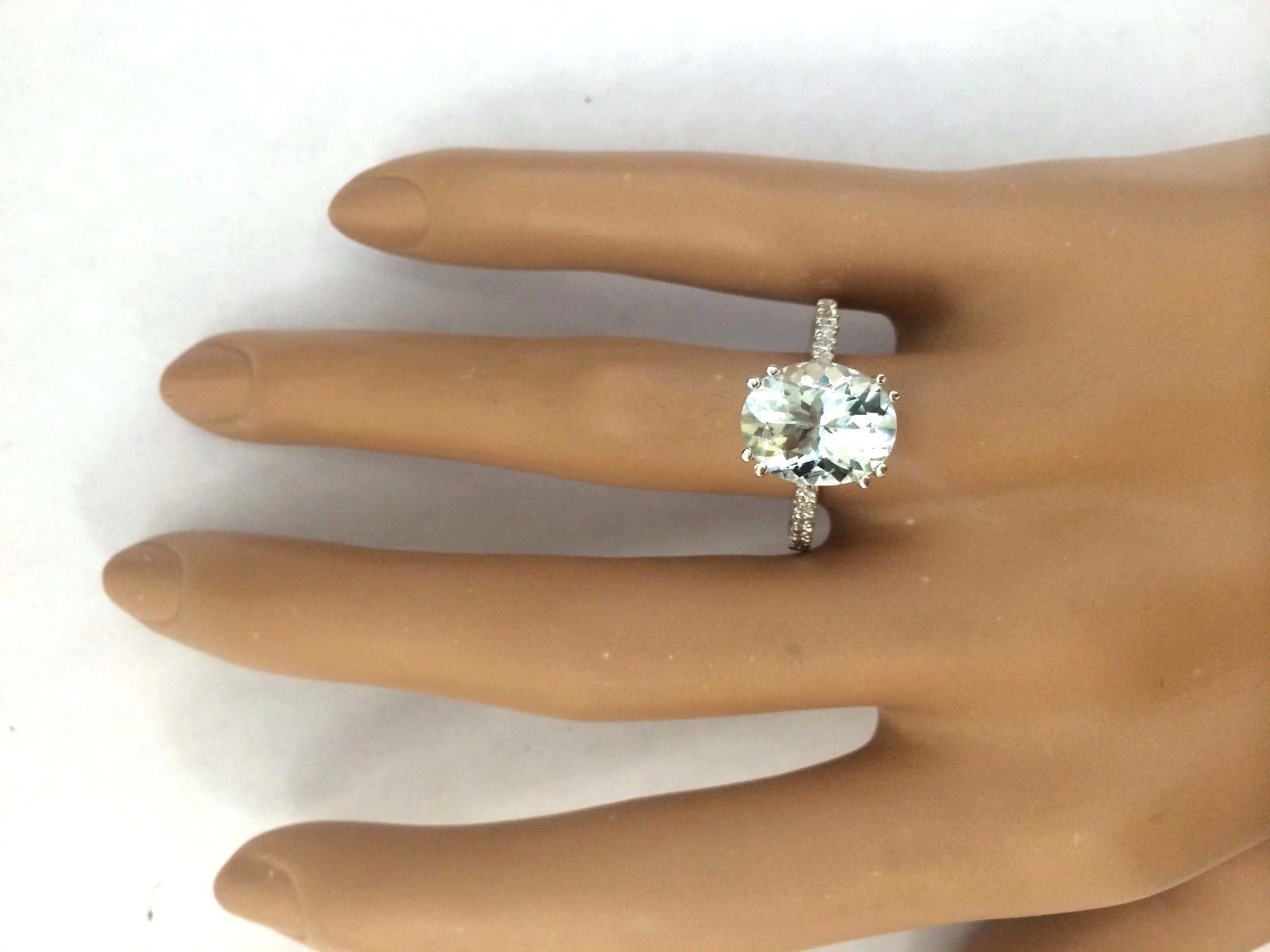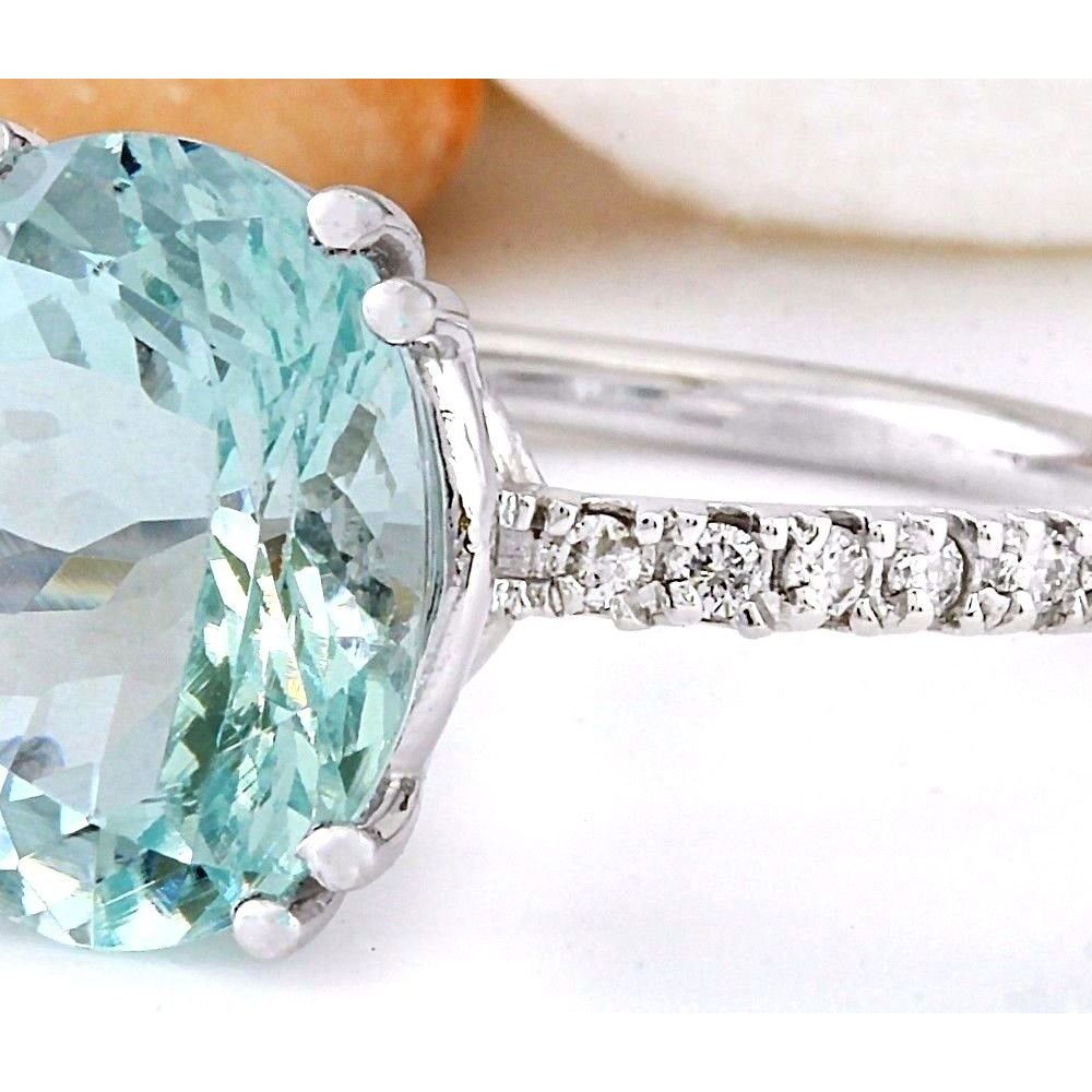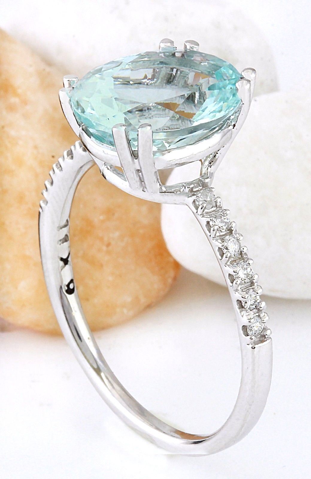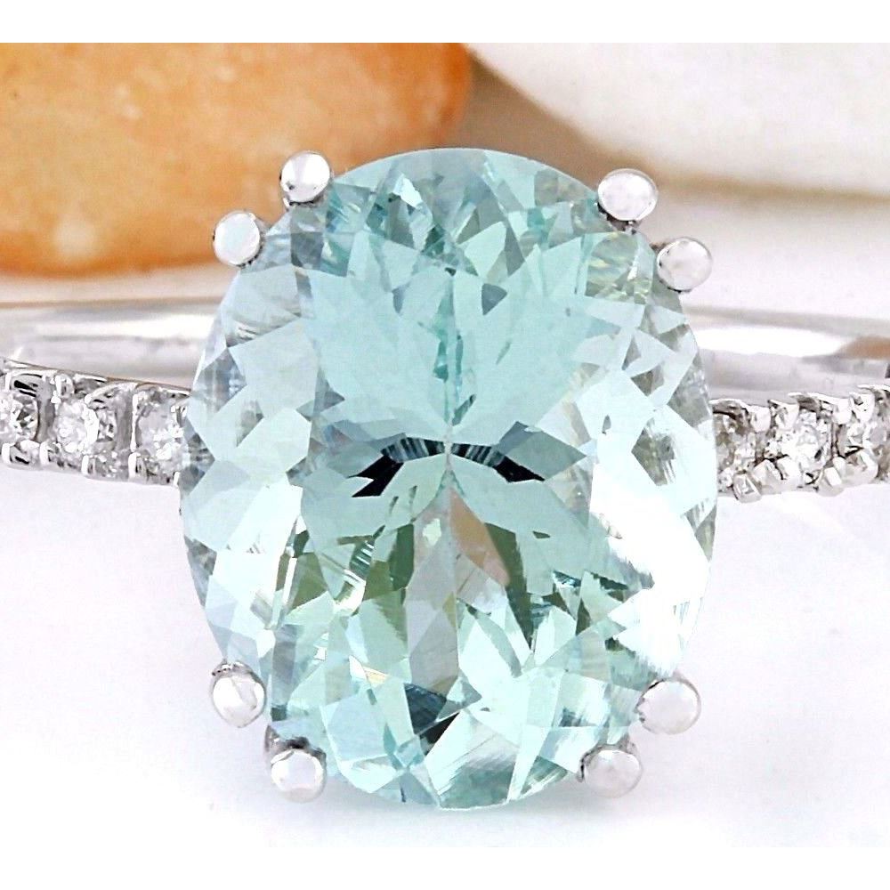 4.32 Carat Natural Aquamarine 18K Solid White Gold Diamond Ring
