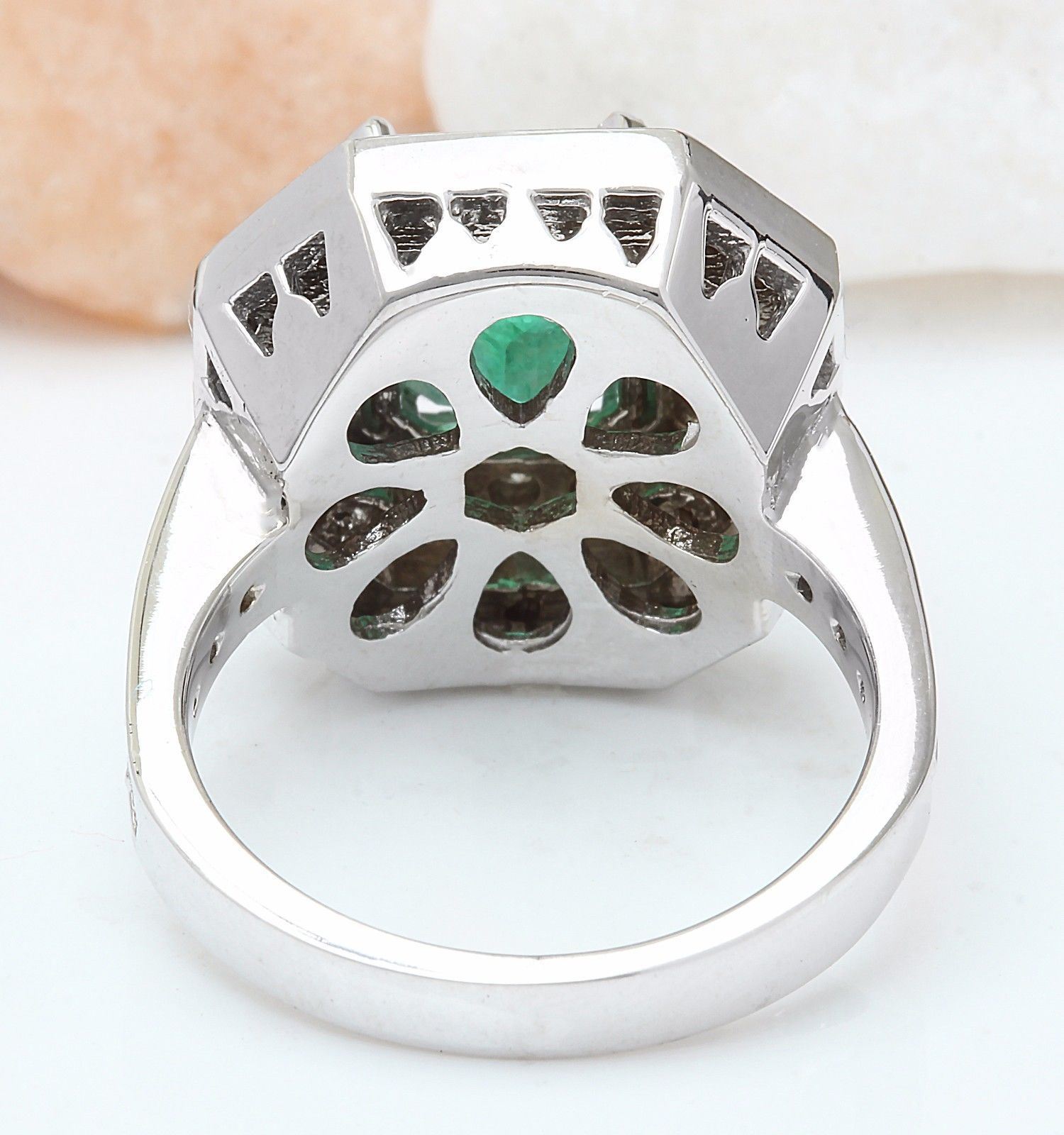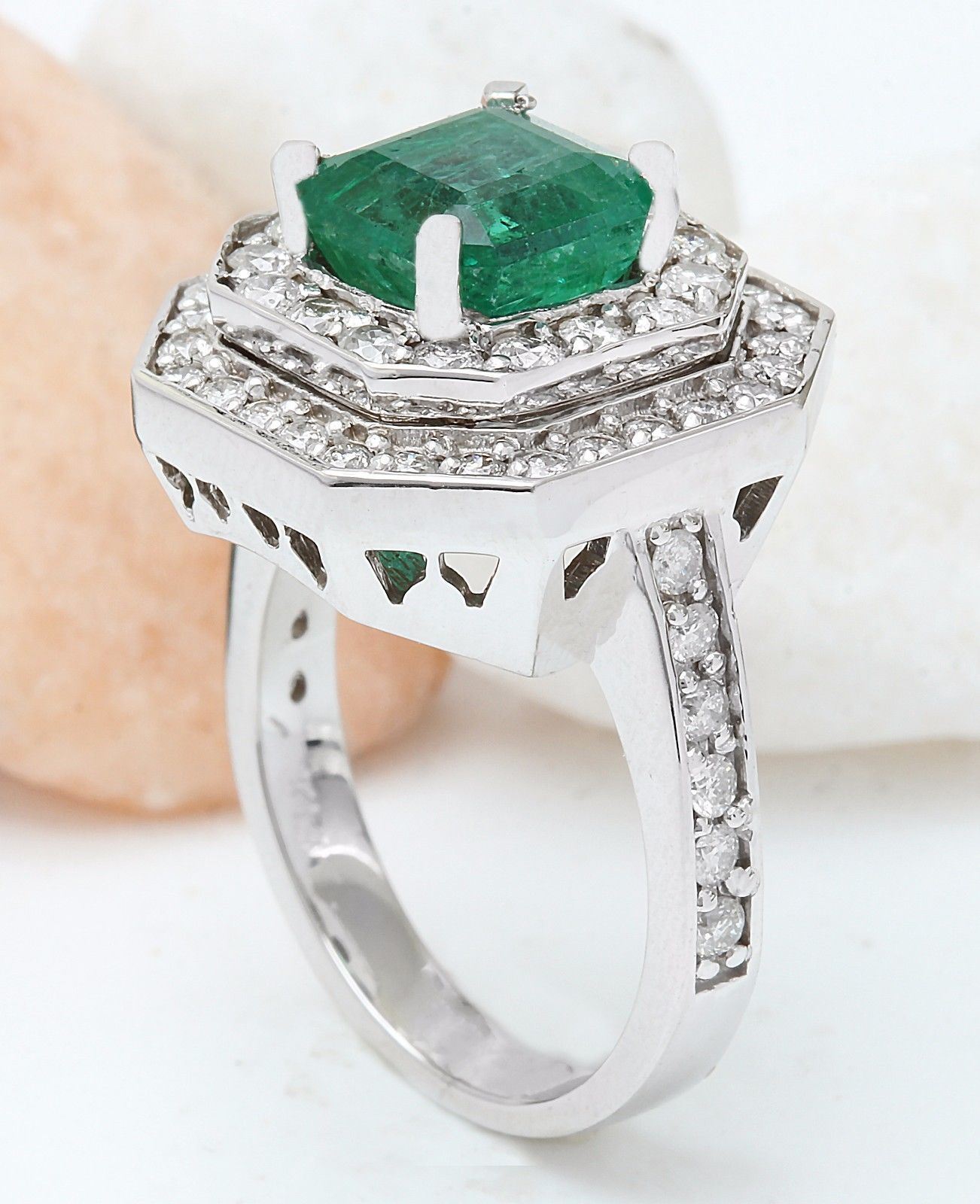 4.32 Carat Natural Emerald 14K Solid White Gold Diamond Ring
