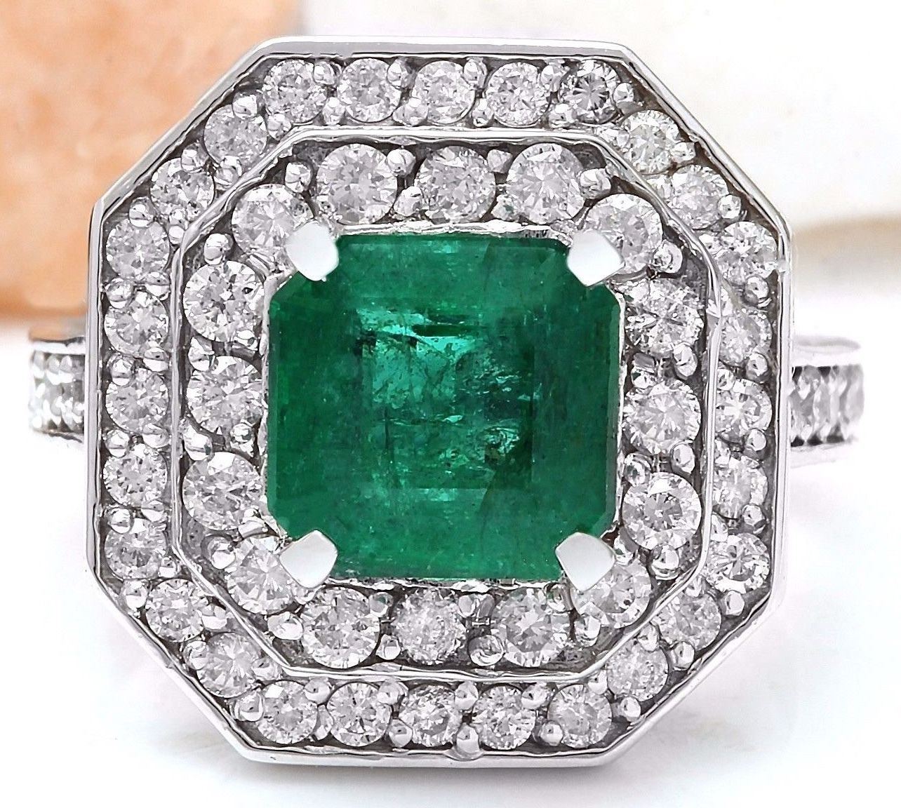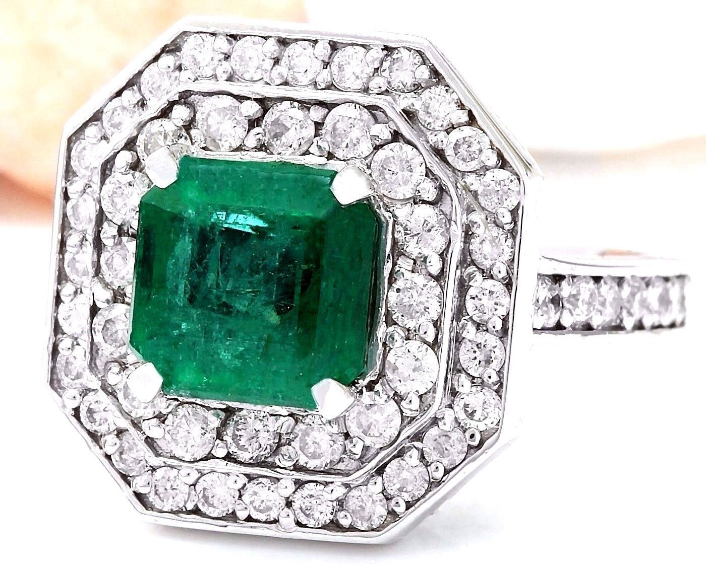 4.32 CTW Natural Emerald 18K Solid White Gold Diamond Ring