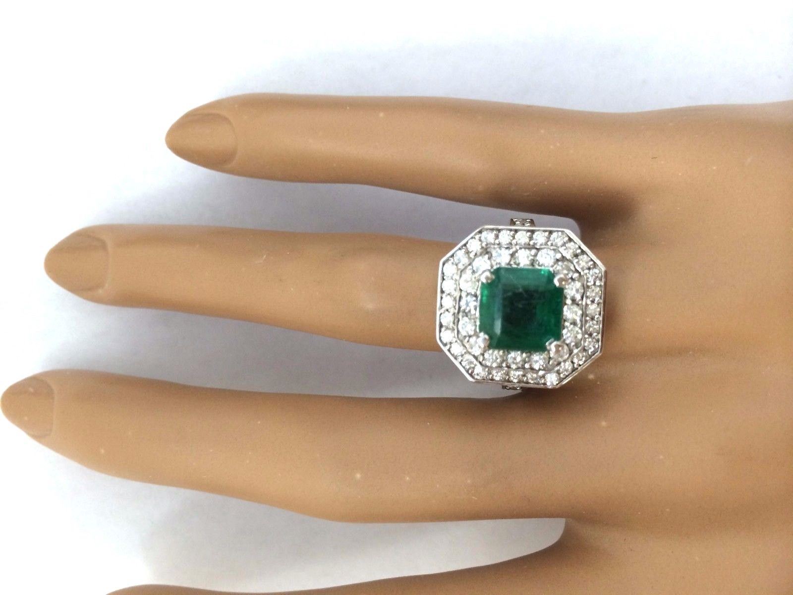4.32 Carat Natural Emerald 18K Solid White Gold Diamond Ring
