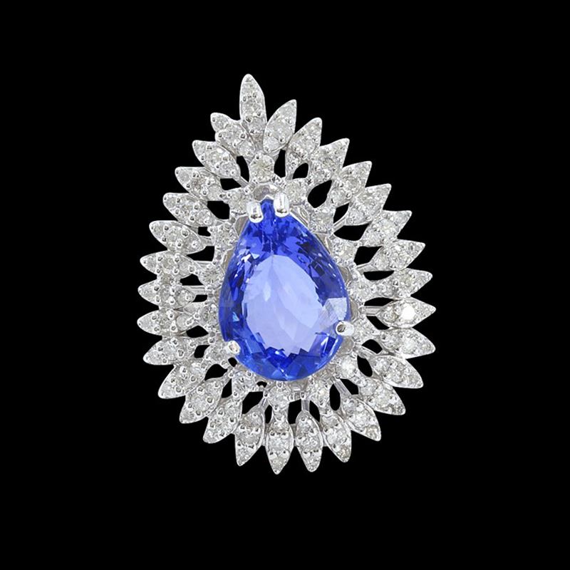 14K WHITE GOLD NATURAL TANZANITE RING:7.03 GRAMS/DIAMOND:1.38CT/TANZANITE:4.32CT/#GVR1194