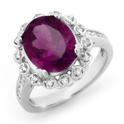 REF-66M4H -13442 ---- 4.33 CTW Amethyst & Diamond Ring 10K White Gold ---- Luxury Designer Brand Ring Appraised at $4,750 Certificate Number US13442 10k White gold, Ring Size is 6.75, Ring measuring approx. 5/8" x 3/4" , weighing in total approx. 5.8 grams. Made in the USA and is stamped 10k, Main stone 4 carat total weight containing 1 pieces of Intense Translucent Purple color with AAA quality Oval shape cut Amethyst , Stone #2 0.33 carat total weight containing 24 pieces of H-I color with VS/SI quality Round shape cut Diamond