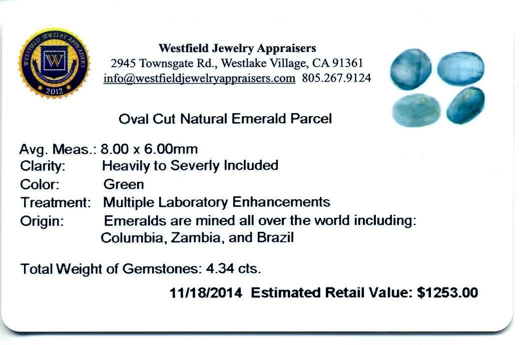 4.34cts. Oval Cut Natural Emerald Parcel Westfield Appraised at $1,253.00.