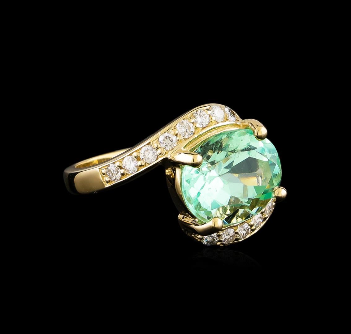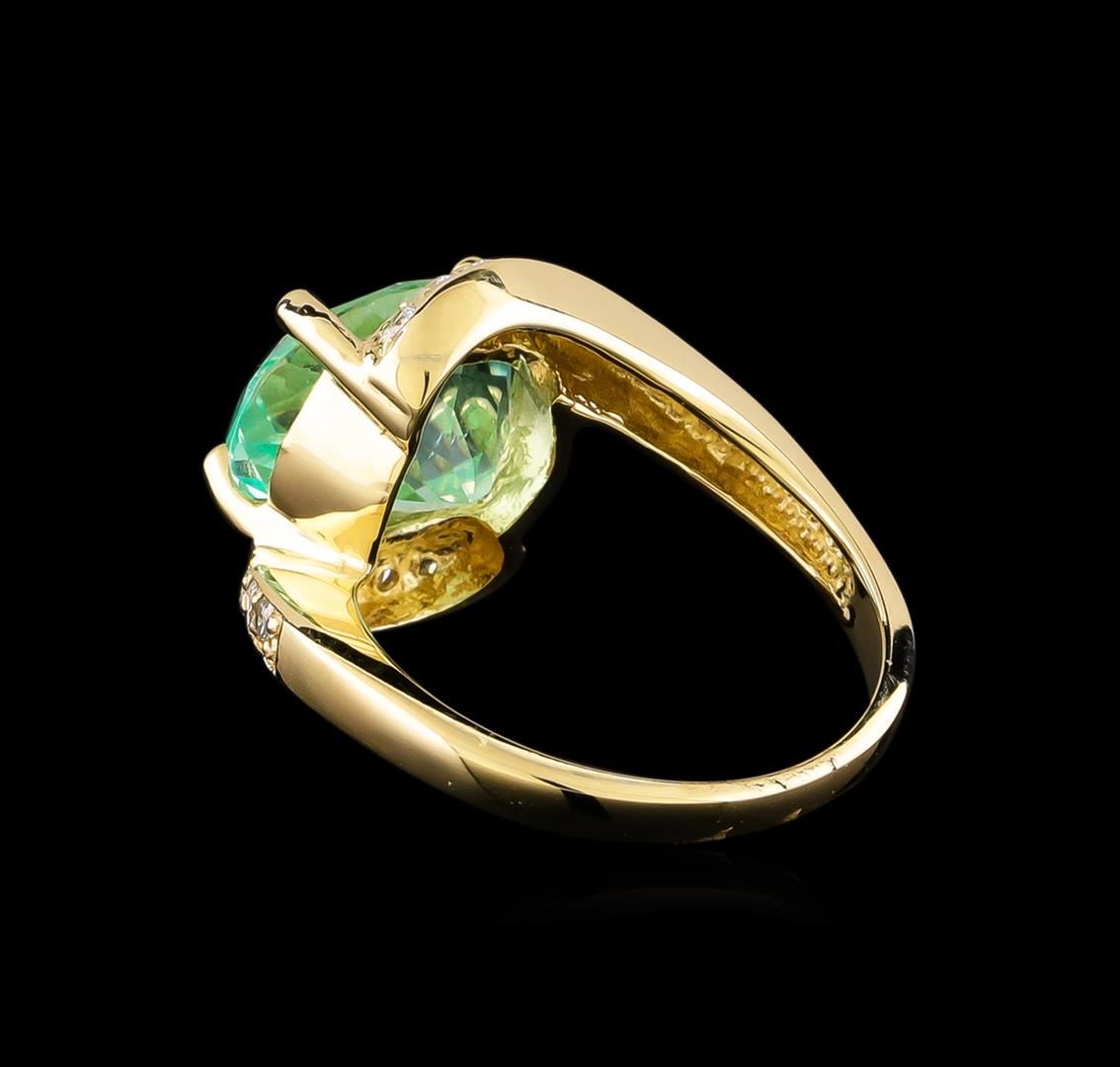 One ring featuring: 14KT Yellow Gold weighing 4.75 grams containing one Emerald center stone with a total weight of 4.34ct and diamonds with a total weight of 0.4ct.