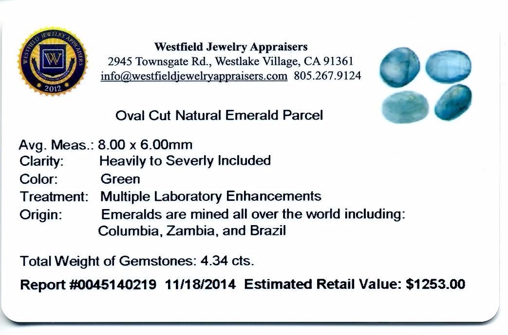 4.34cts. Oval Cut Natural Emerald Parcel Westfield Appraised at $1,253.00.