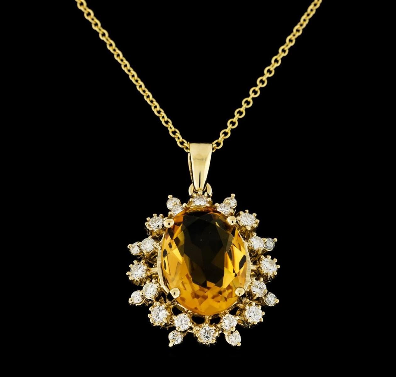 One pendant with chain : 14KT Yellow gold weighing 3.72gm containing citrine quartz with a total weight of 4.35ct and diamonds weighing 0.55ctw.