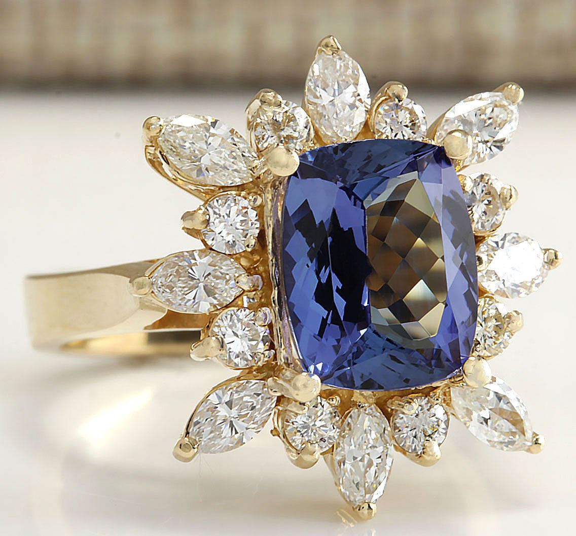 4.36 CTW Natural Blue Tanzanite And Diamond Ring In 14K Solid Yellow Gold