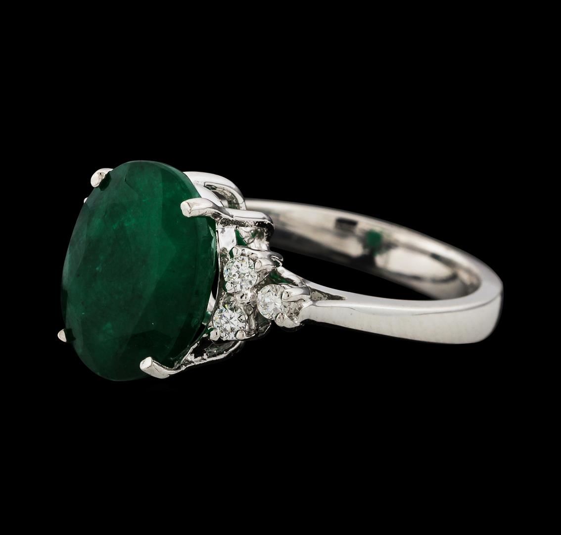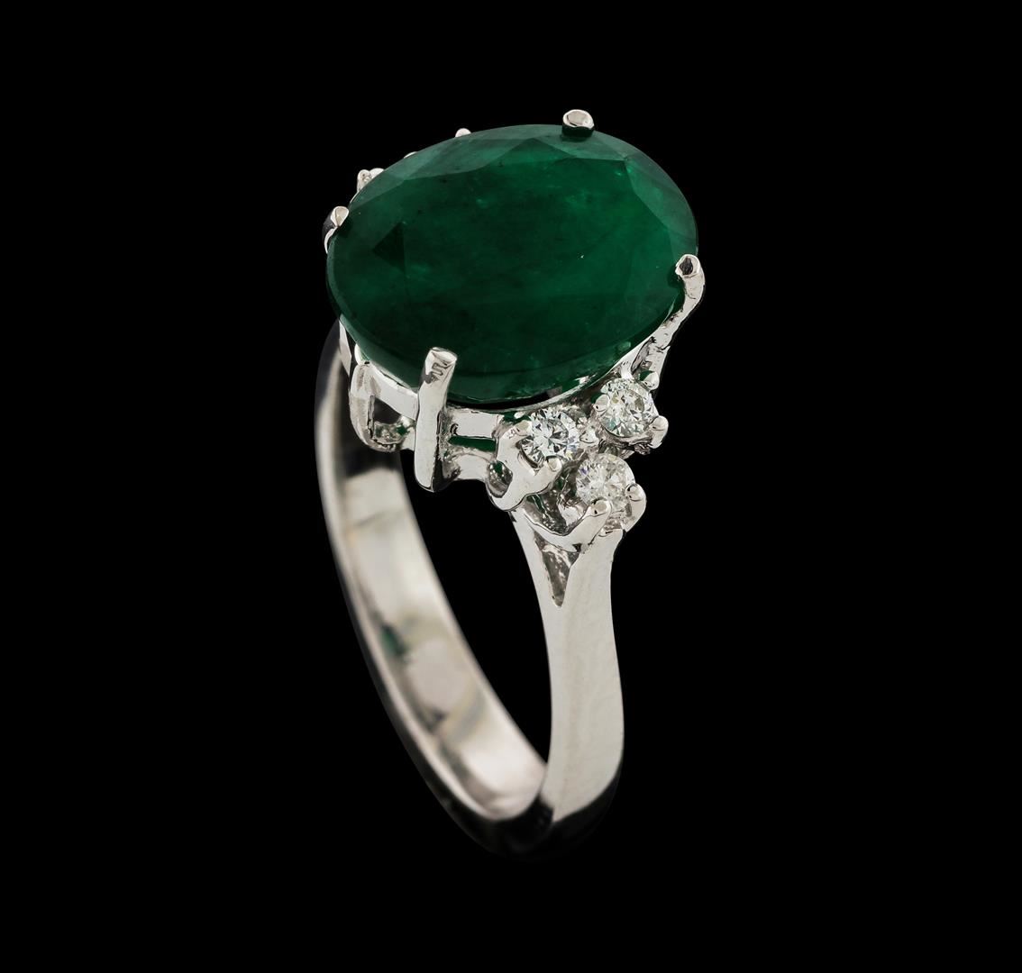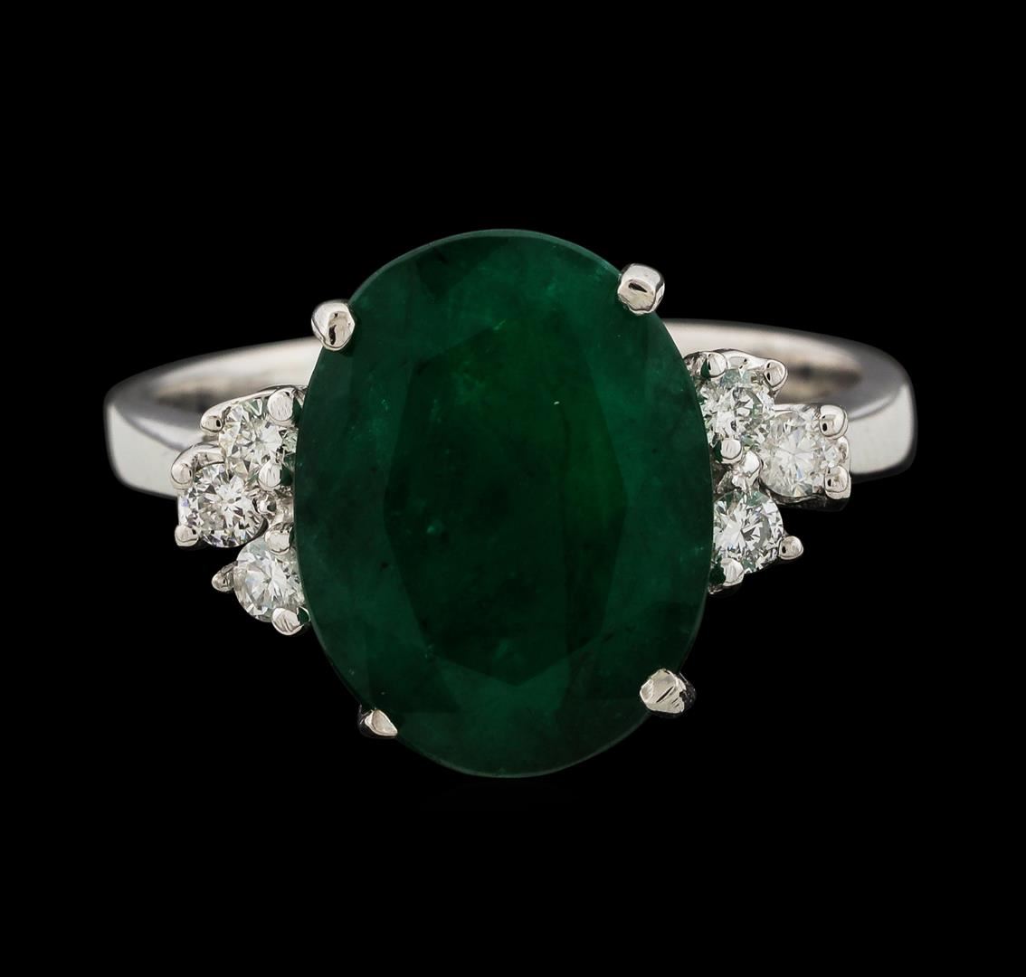 One Ring : 14KT white gold weighing 4.31gm containing one emerald with a total weight of 4.36ct and side diamonds weighing 0.15ctw.