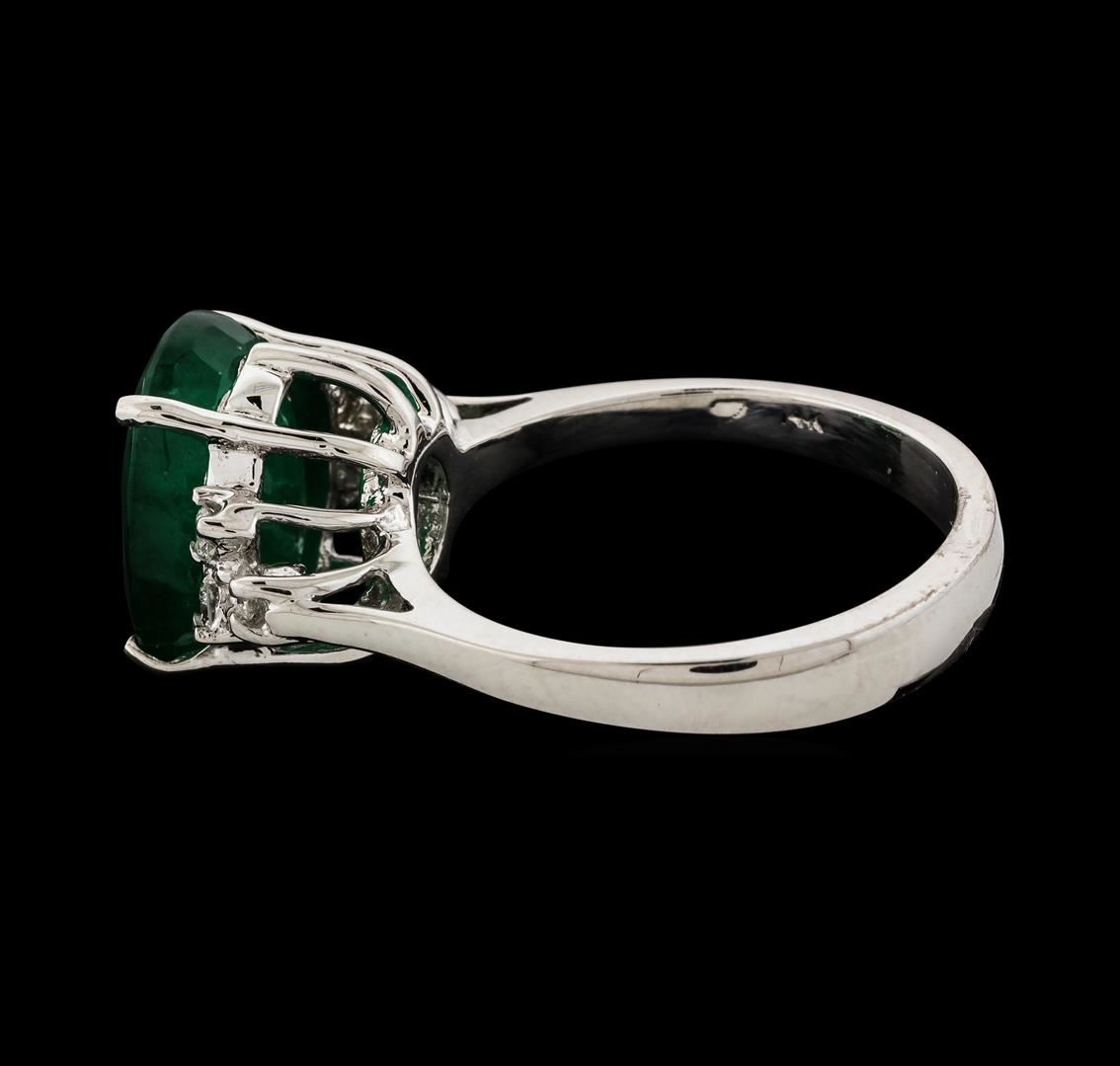 One Ring : 14KT white gold weighing 4.31gm containing one emerald with a total weight of 4.36ct and side diamonds weighing 0.15ctw.